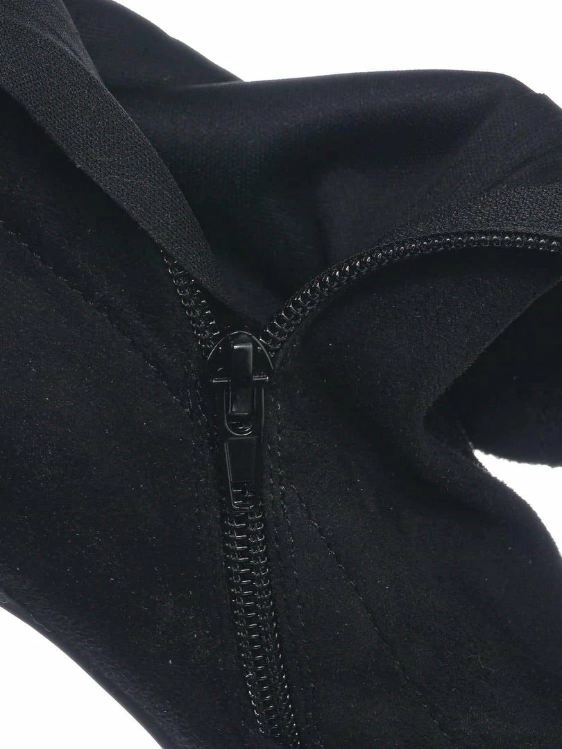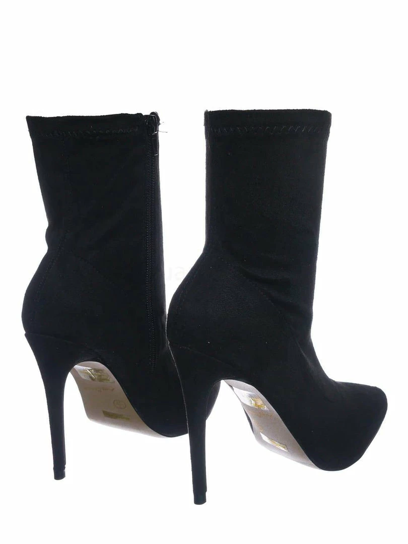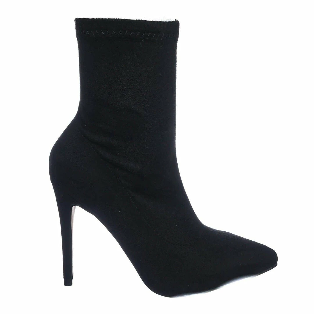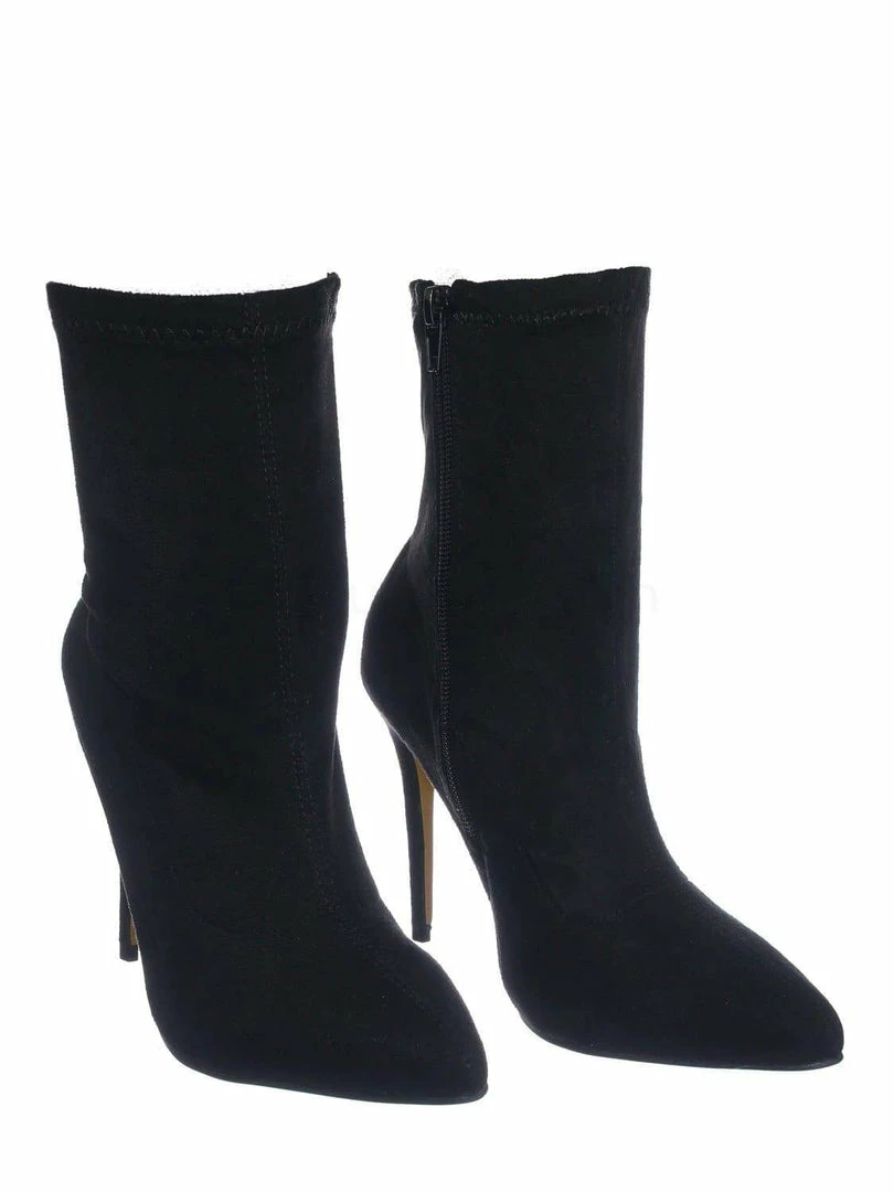 Product Detail : These boots features a pointed closed toe, thin stiletto high heel, soft elastic slouchy shaft, ankle height shaft, side zipper closure.
