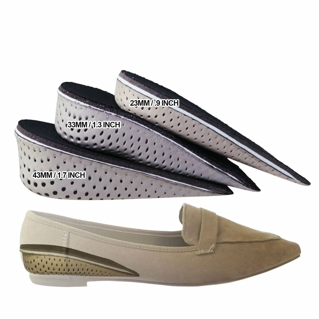 Perfect accessories to add and adjust the height of your shoes without wearing heels, works on most footwear but ideal for flats, boot, booties, sneaker, tennis shoes, work shoes etc