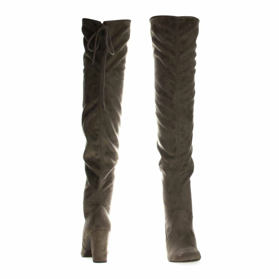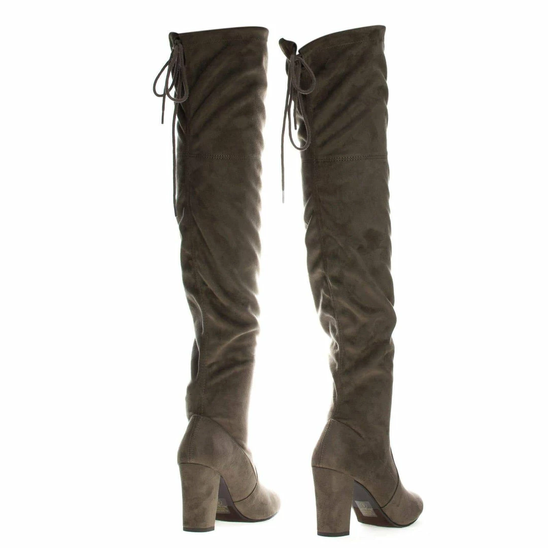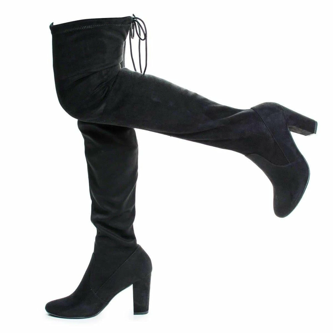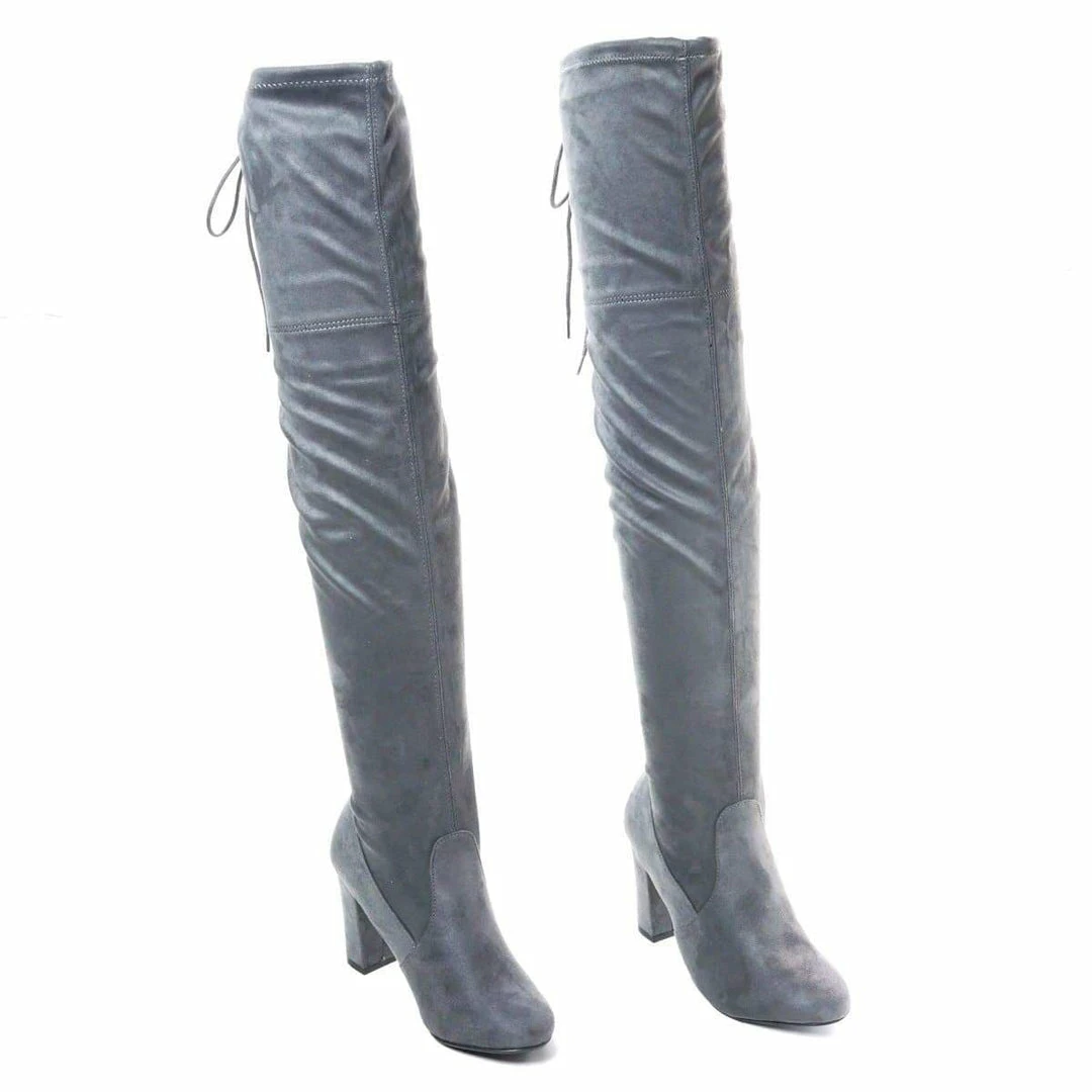 Aquapillar New Snivy OTK Over Knee Thigh Slouchy Boots – Women Back Lace Tie & Block Heel