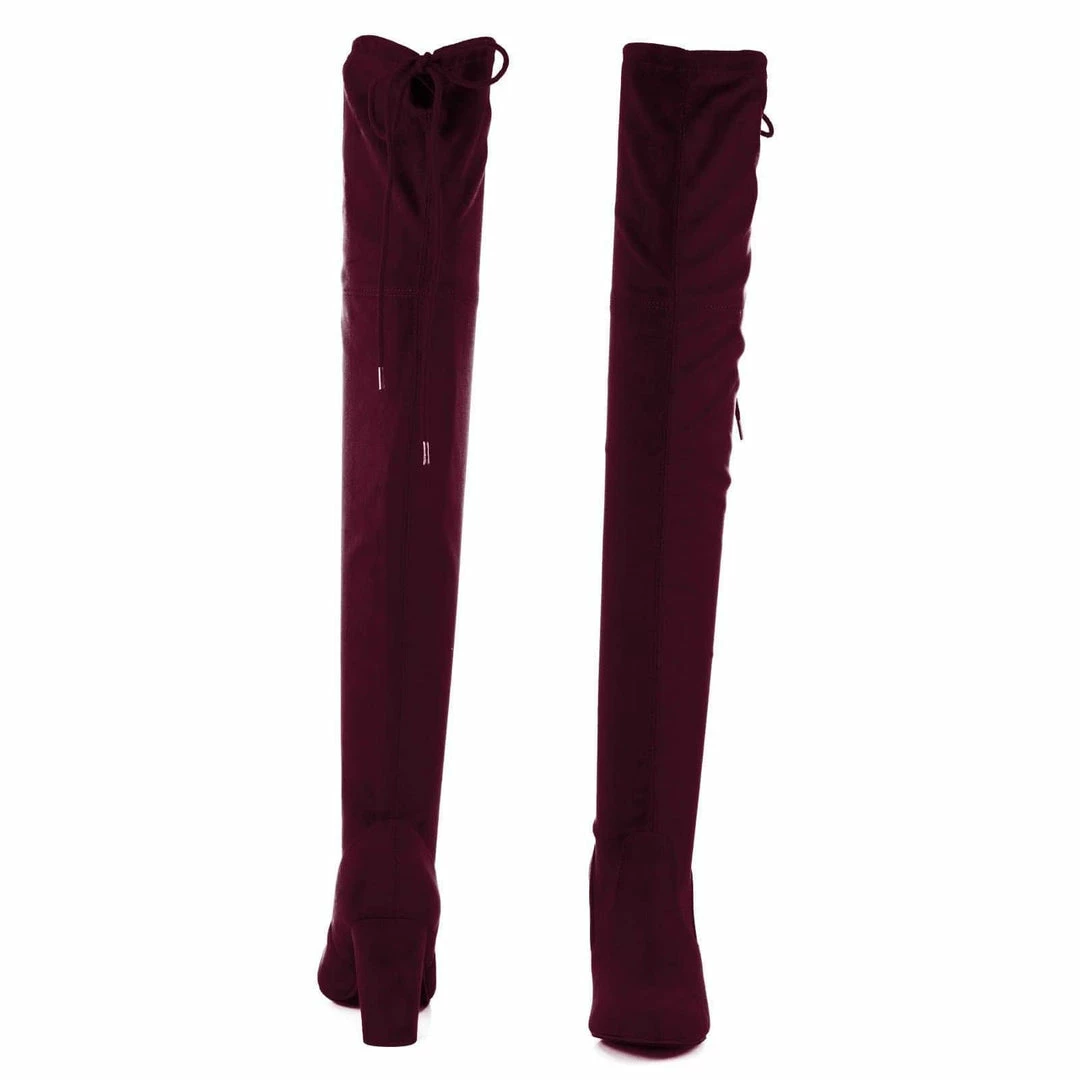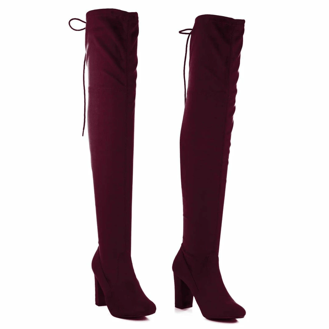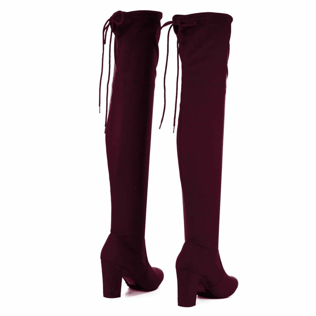 Aquapillar New Snivy OTK Over Knee Thigh Slouchy Boots – Women Back Lace Tie & Block Heel