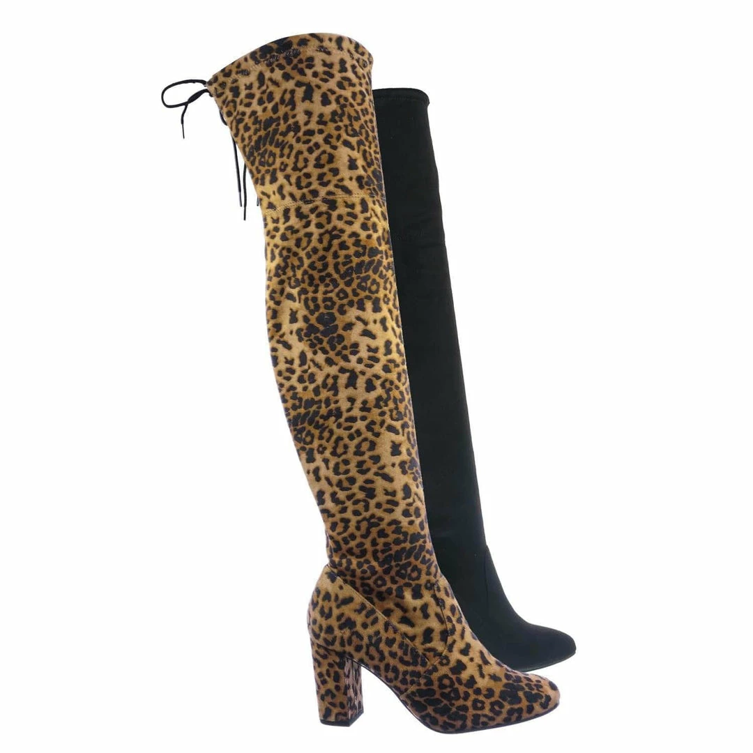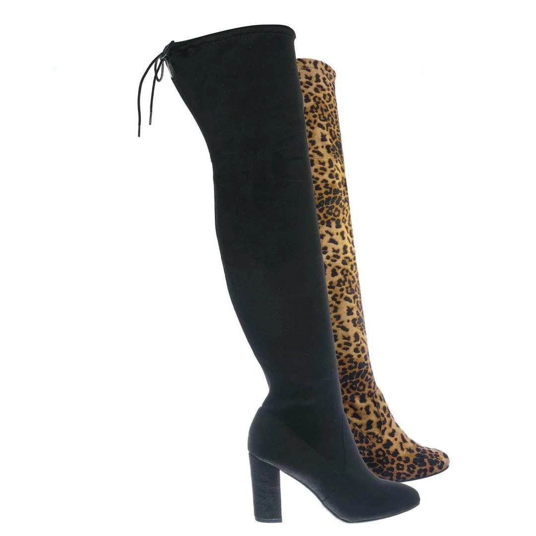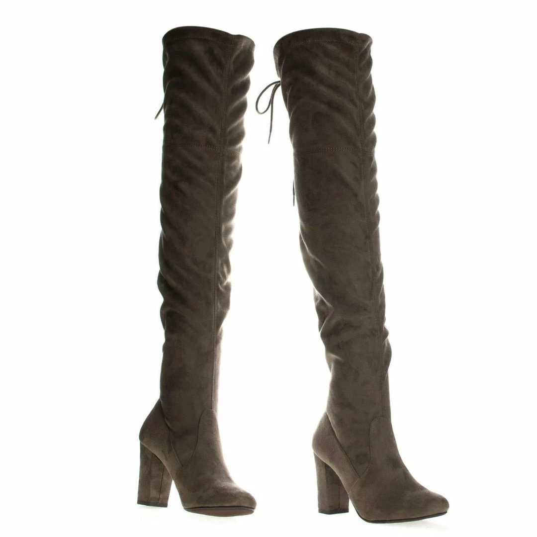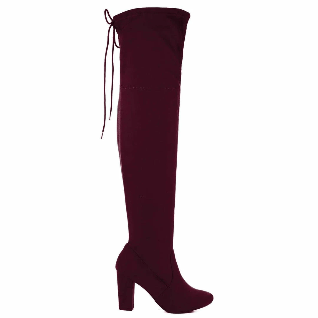 Aquapillar New Snivy OTK Over Knee Thigh Slouchy Boots – Women Back Lace Tie & Block Heel