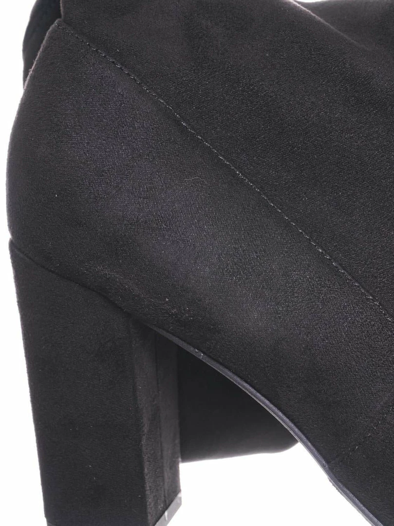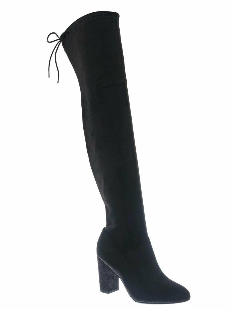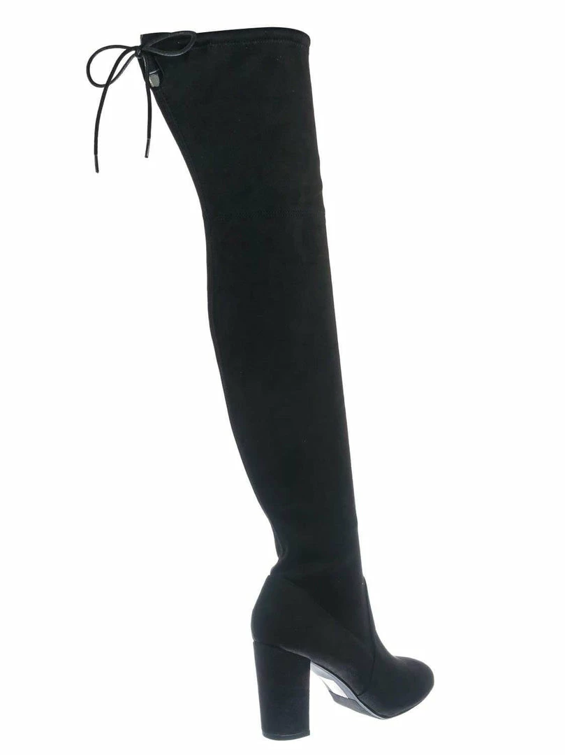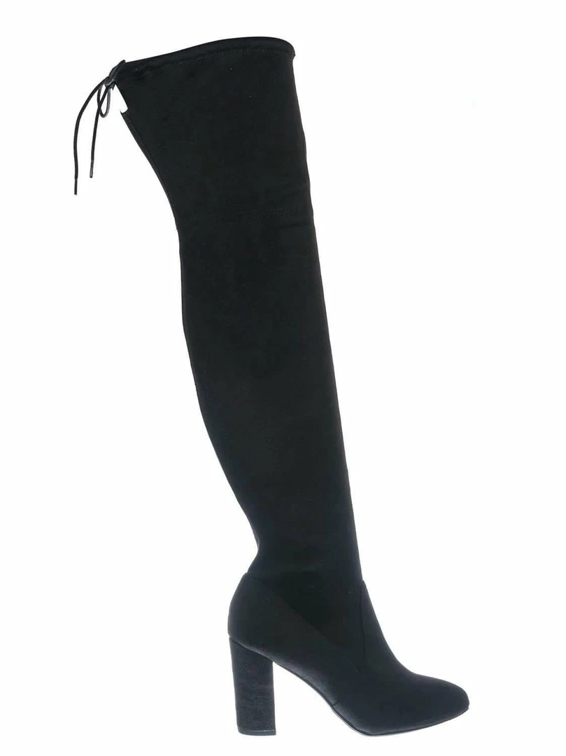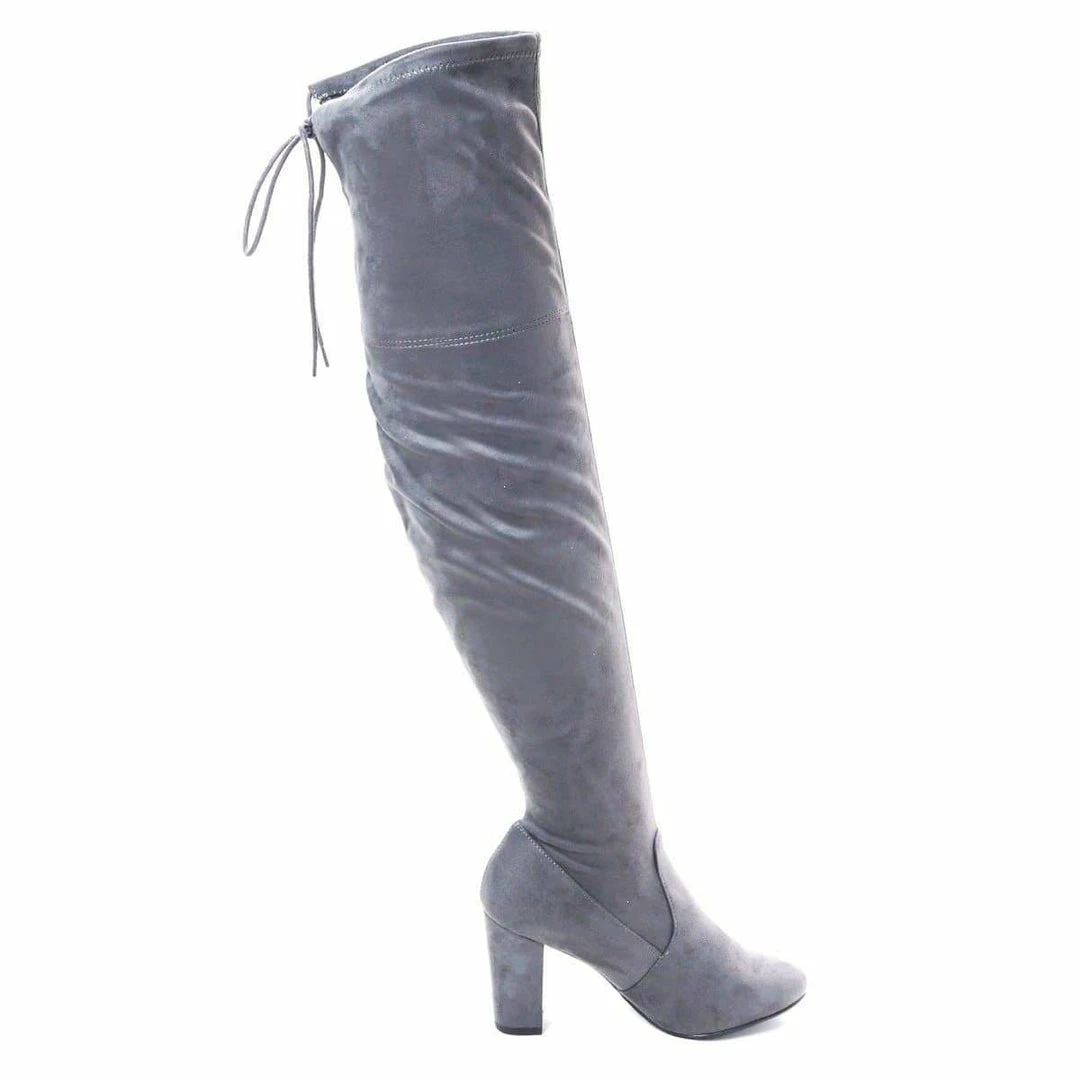 Product Detail : These over the knee boots features a chunky block heel, thigh high shaft, rounded closed toe, slouchy pull on shaft with back tie closure and lightly padded insole.
