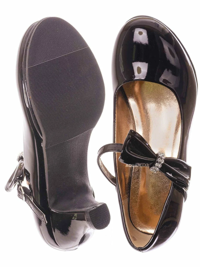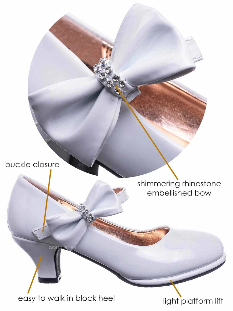 Product Detail : These classy dress pump features a comfy low block heel and a light platform. The pump can be secured with the Mary-Jane ankle buckle strap. The strap is embellished in rhinestone and bow ornamentation and has a nice rounded close toe.