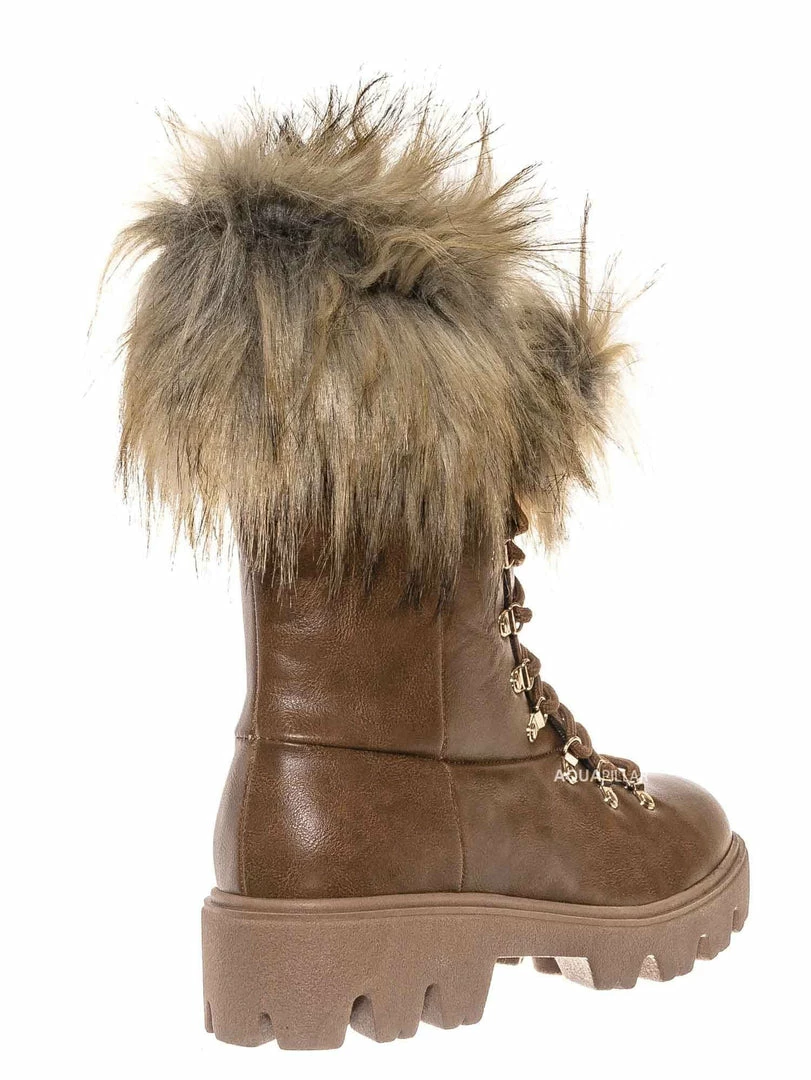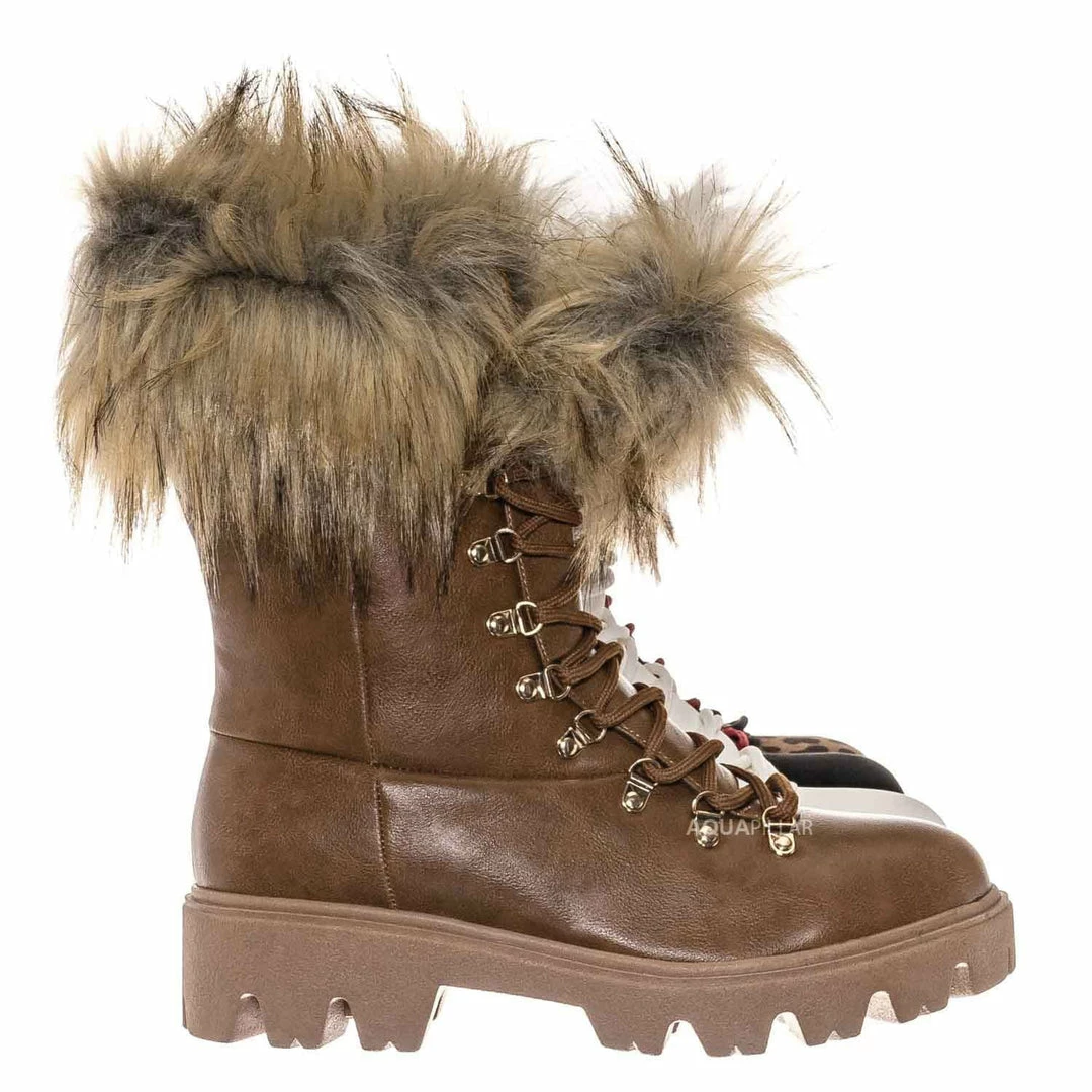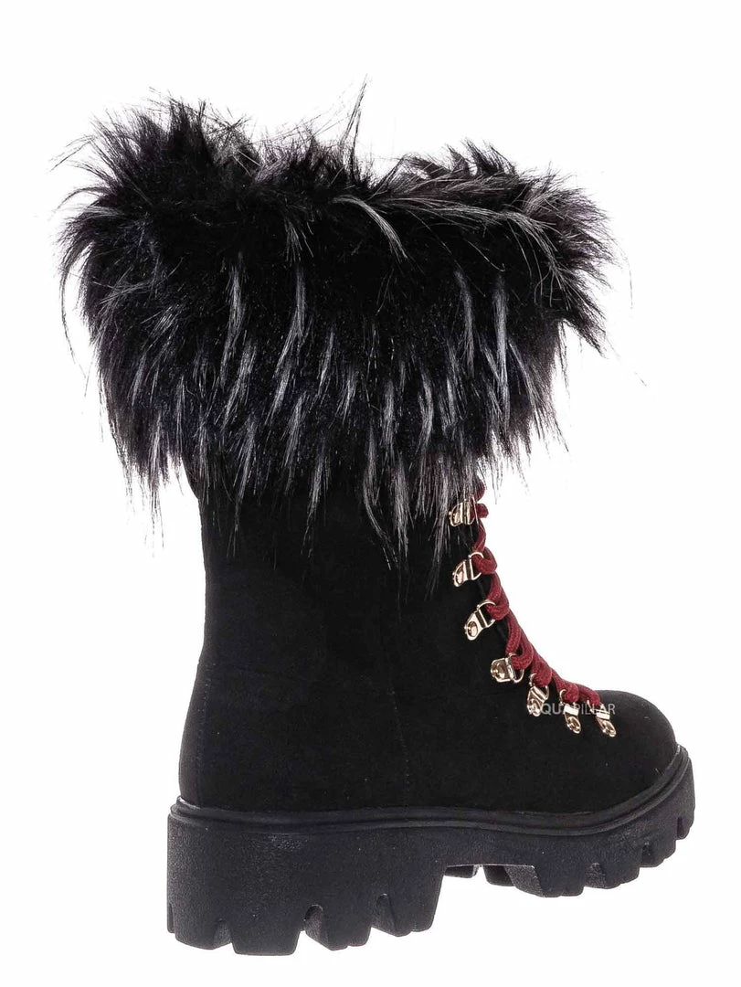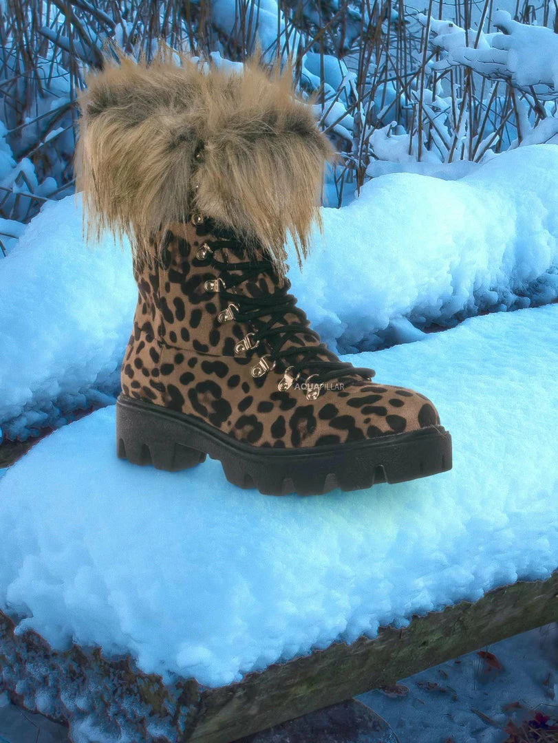 Product Detail : These boots features a military inspired combat boot silhouette, threaded lug sole for better grip, rounded closed toe, vegan friendly faux fur collar, lightly padded insole.