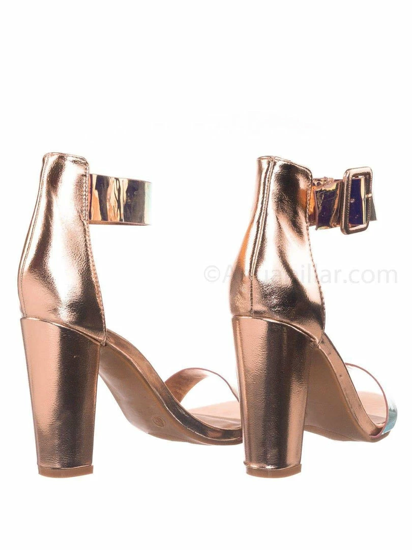 Product Detail : These sandals features a chunky block high heel, two piece construction, single foot strap, closed heel counter, thick adjustable ankle strap, lightly padded insole and open toe construction. Choose from solid color or color changing hologram.