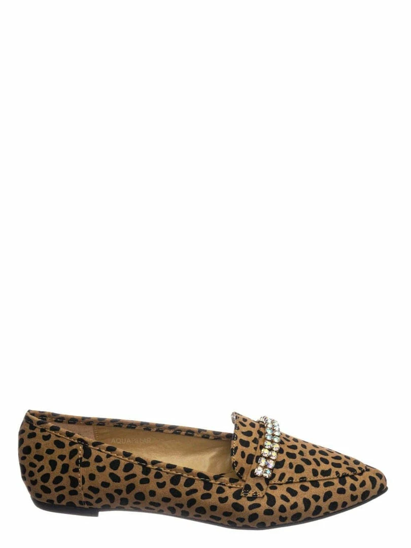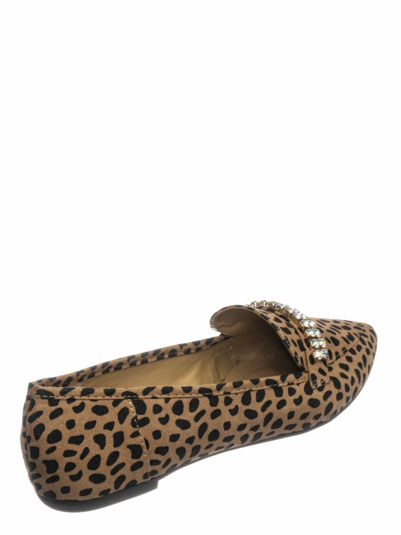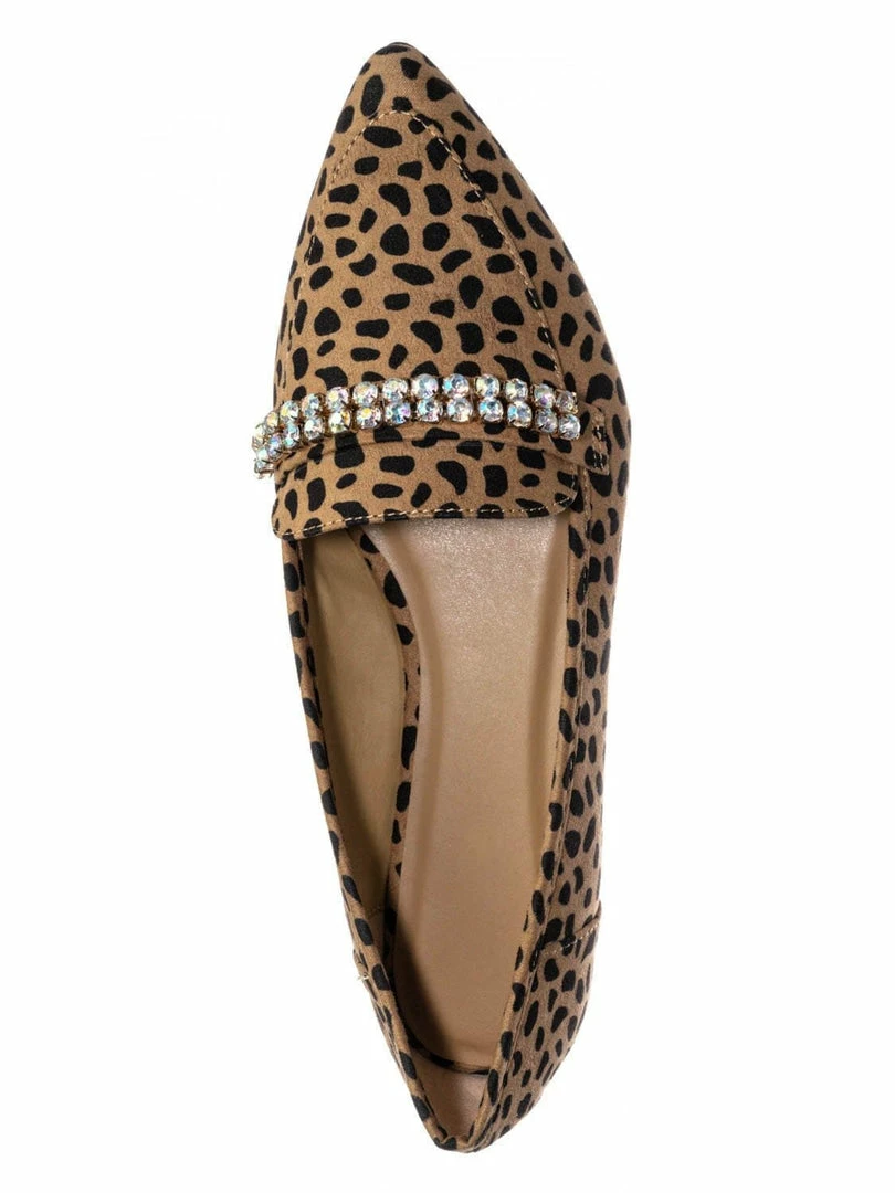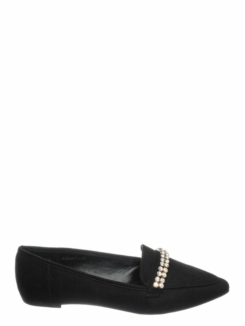 Product Detail :These flats features a classic loafer silhouette, notched collar, double rhinestone band embellished across the front, pointed close toe and lightly padded insole.