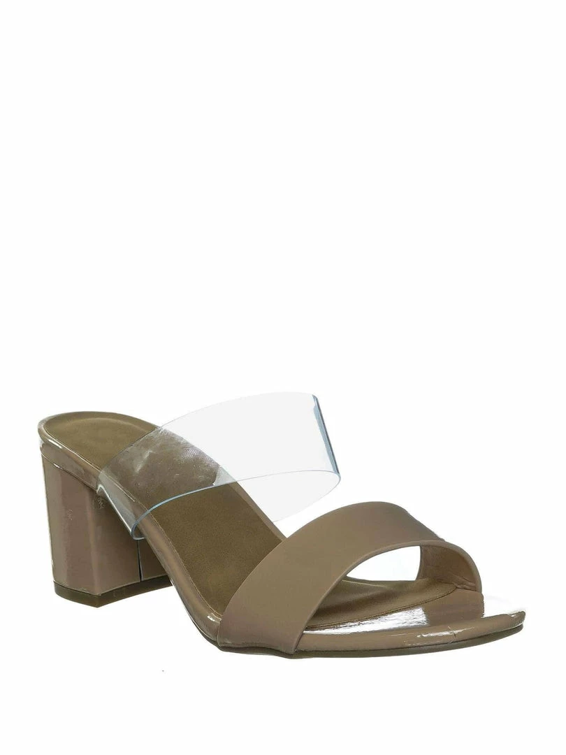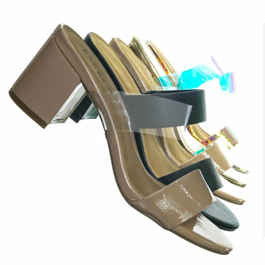 Bamboo New Headline13 Iridescent Lucite Strap Mule – Womens Open Toe Chunky Heel Sandals