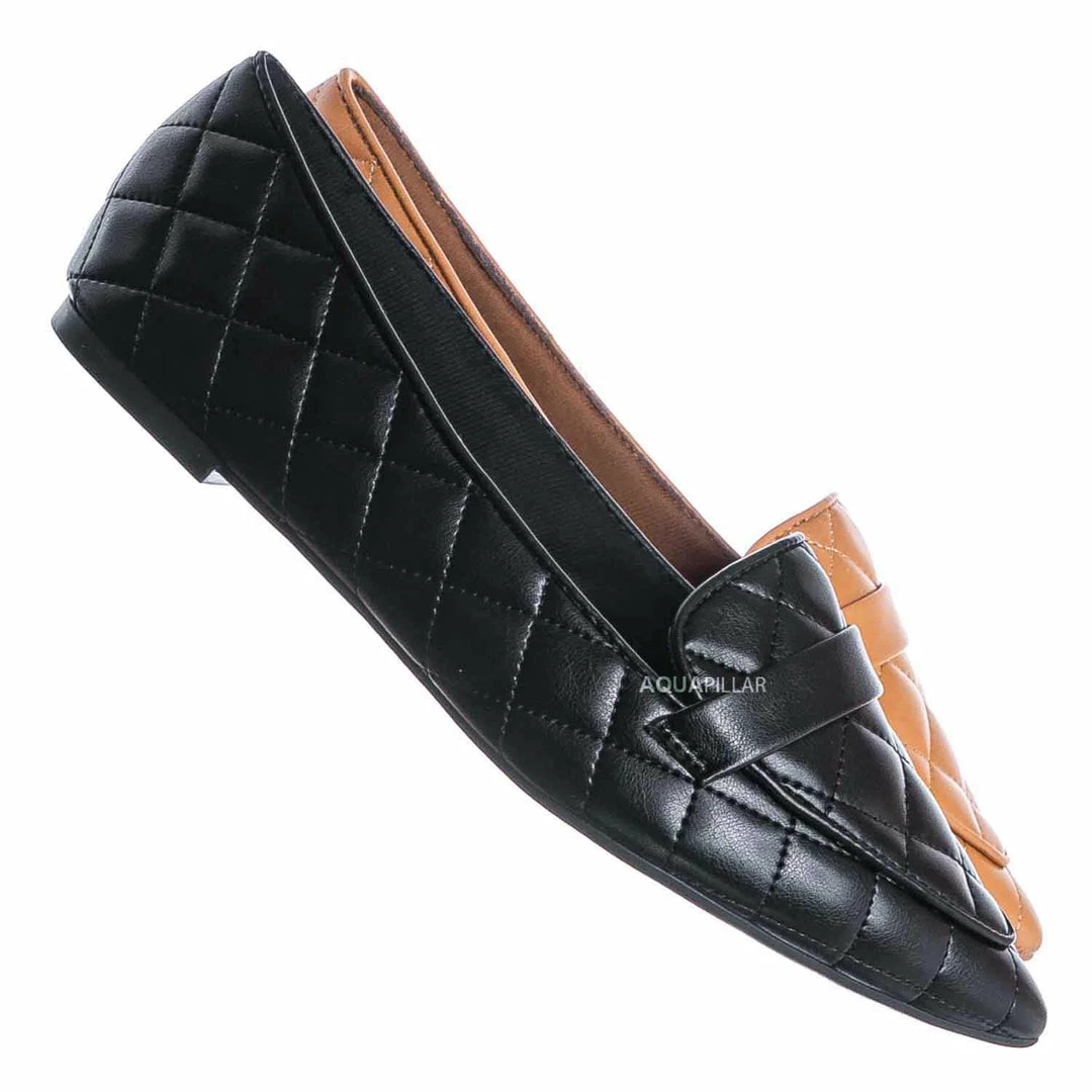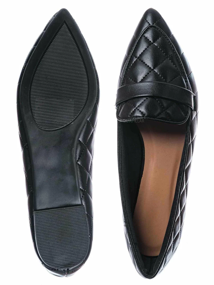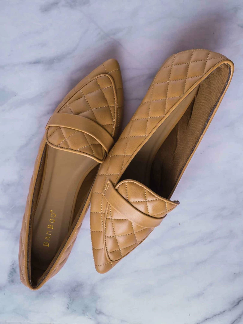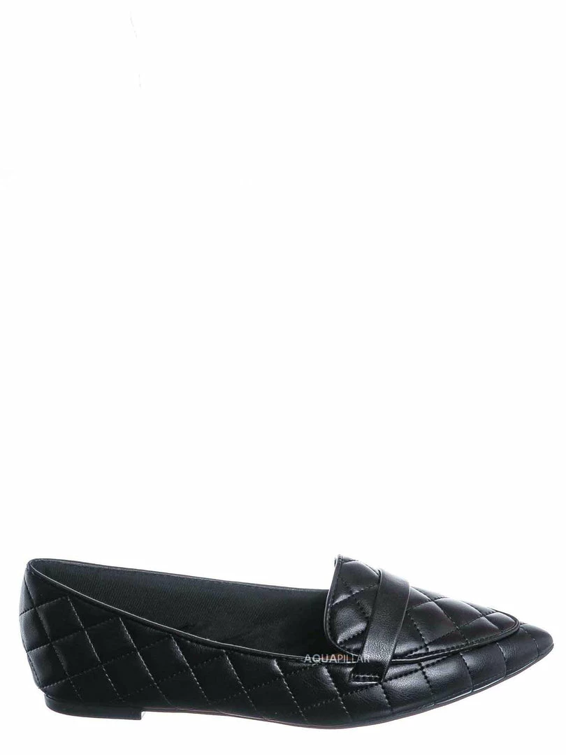 Product Detail : These slip on loafers features a ballerina like flat construction with pointed closed toe and a foot strap. The upper is covered in padded quilted detail and lightly padded insole.