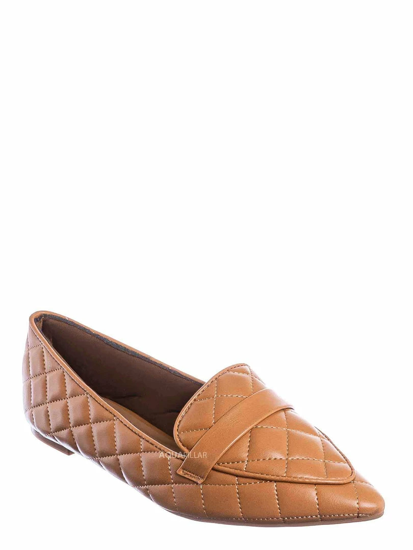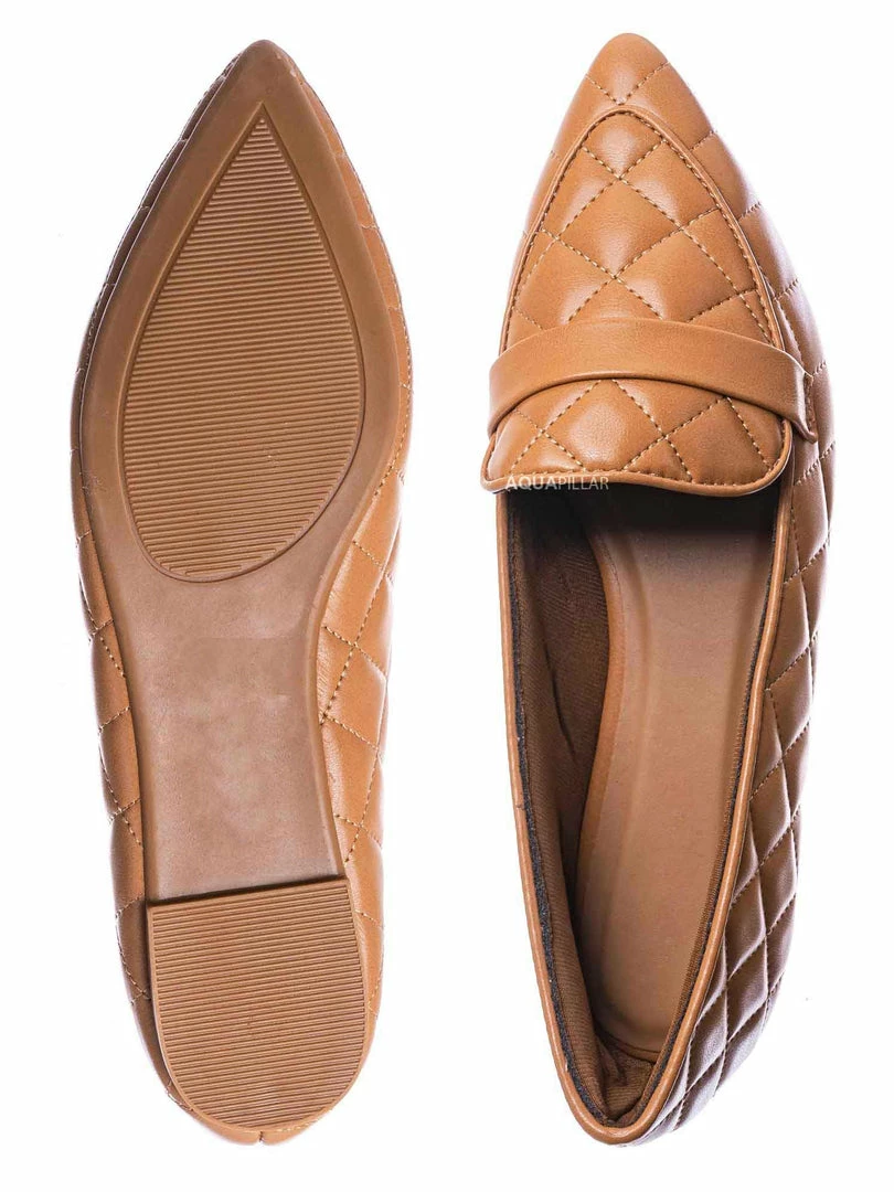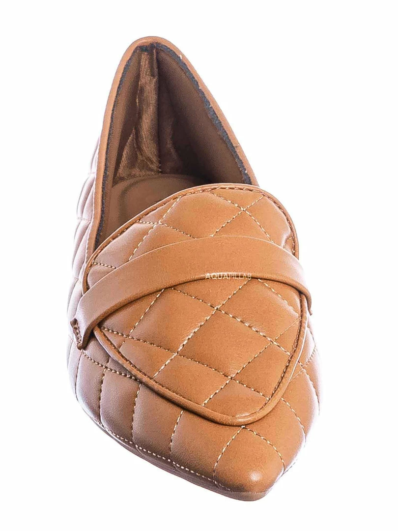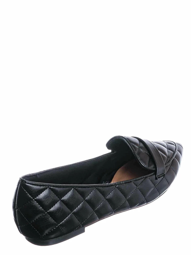 Product Detail : These slip on loafers features a ballerina like flat construction with pointed closed toe and a foot strap. The upper is covered in padded quilted detail and lightly padded insole.