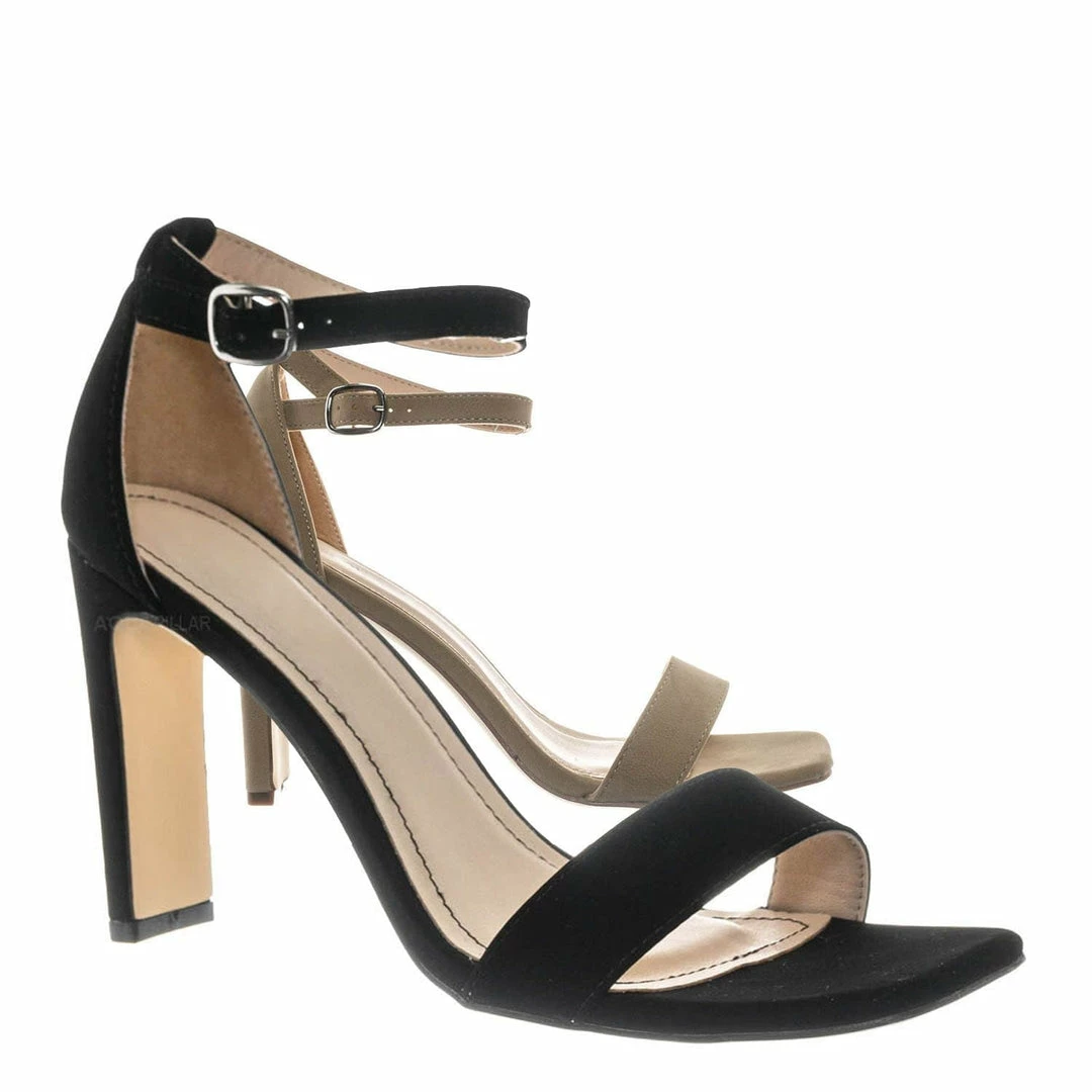Product Detail : These dress sandals features a thin, barely there chunky block heel, open squared toe, two piece construction, adjustable ankle strap, closed heel counter and lightly padded insole.