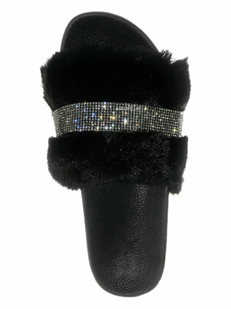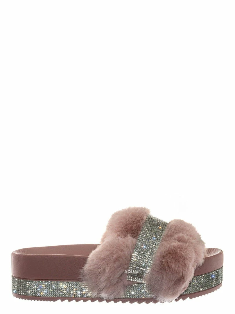 Benefits : These fluffy and sparkling rhinestone faux fur sandal are built on molded footbed.