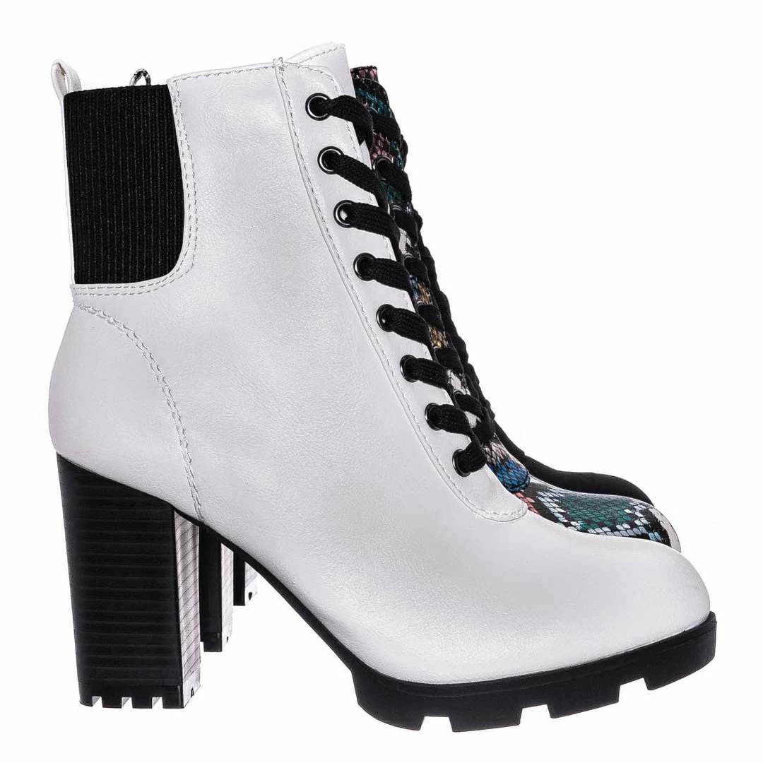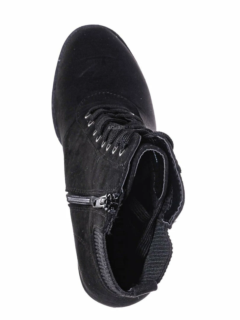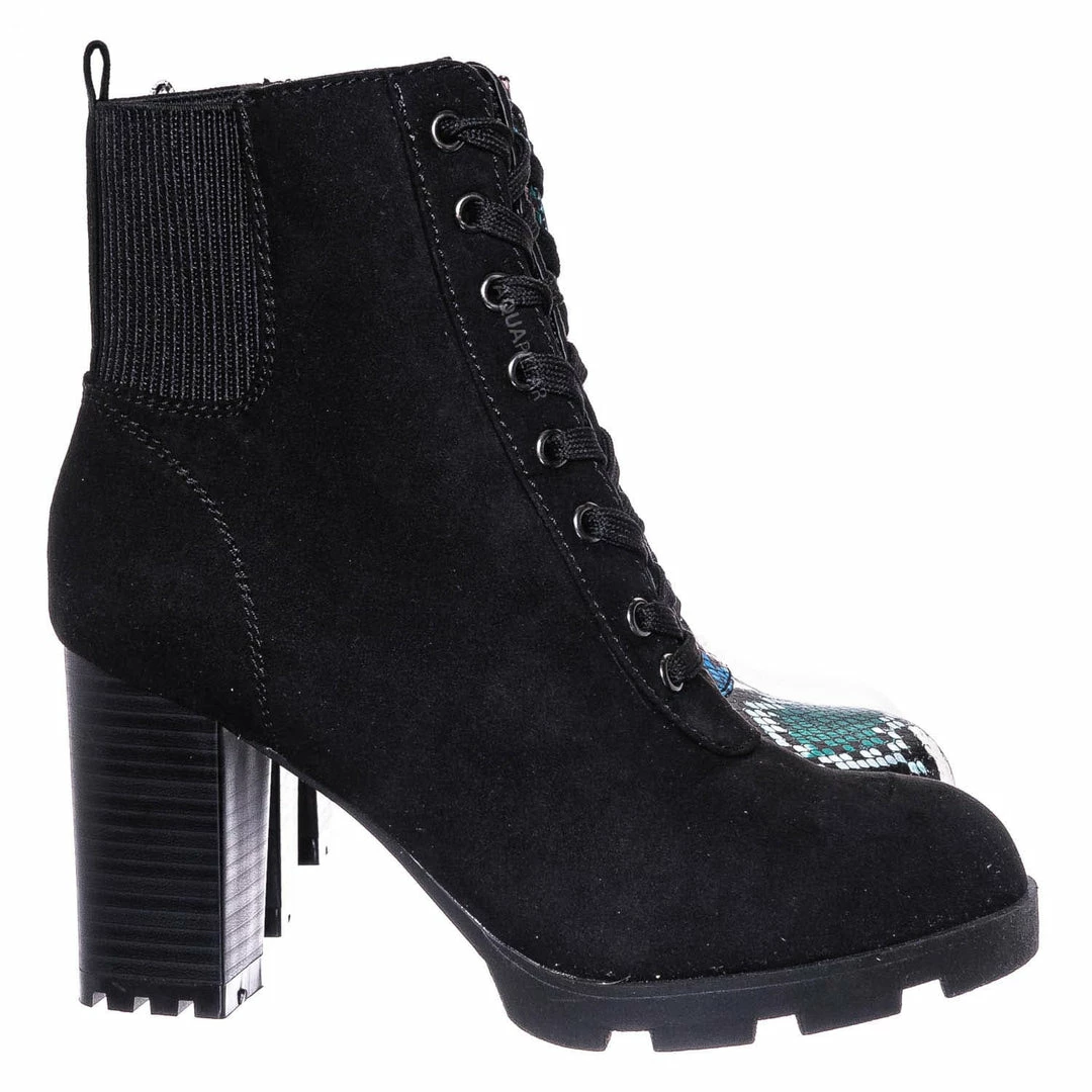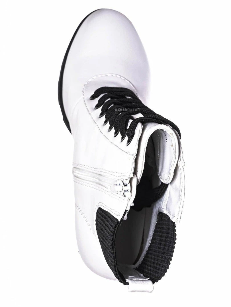 Product Detail : These military inspired combat boots features a chunky block high heel, thick threaded lug sole, elastic back panel for easy fitting, inner zip up closure, high ankle shaft, back pull tab, rounded closed toe and lightly padded insole.