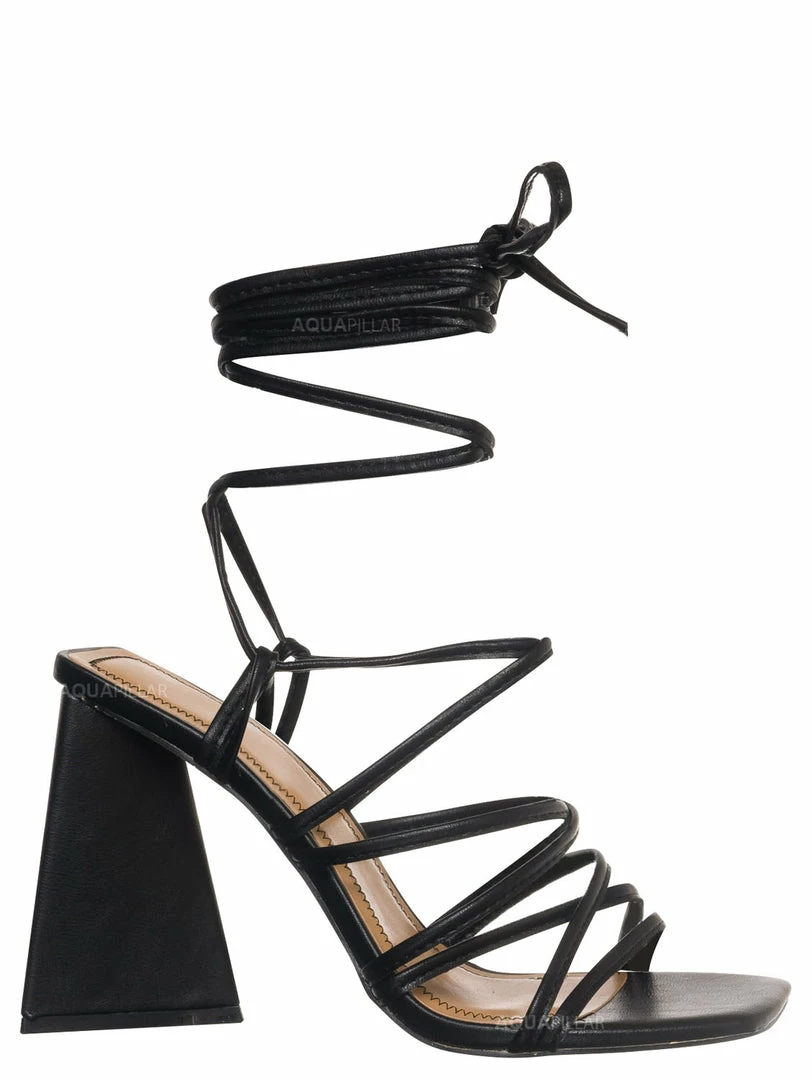 Ankle strap, gladiator inspired leg Wraparound, lace up silhouette