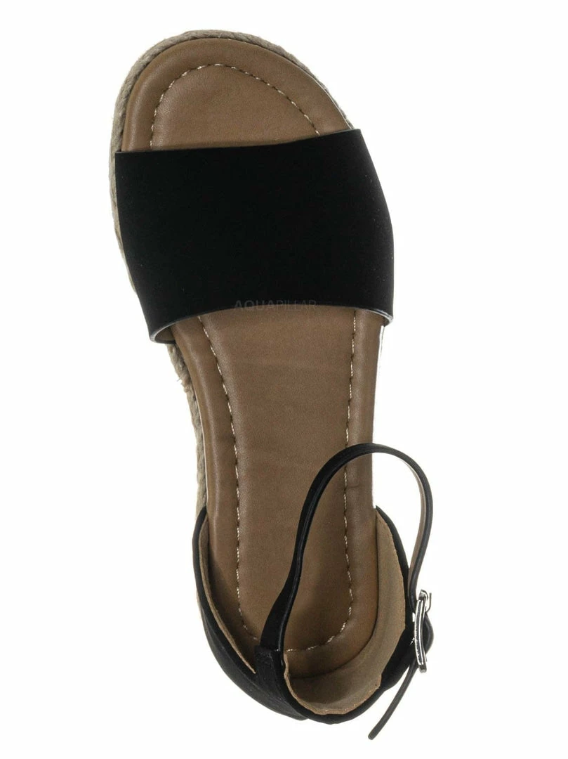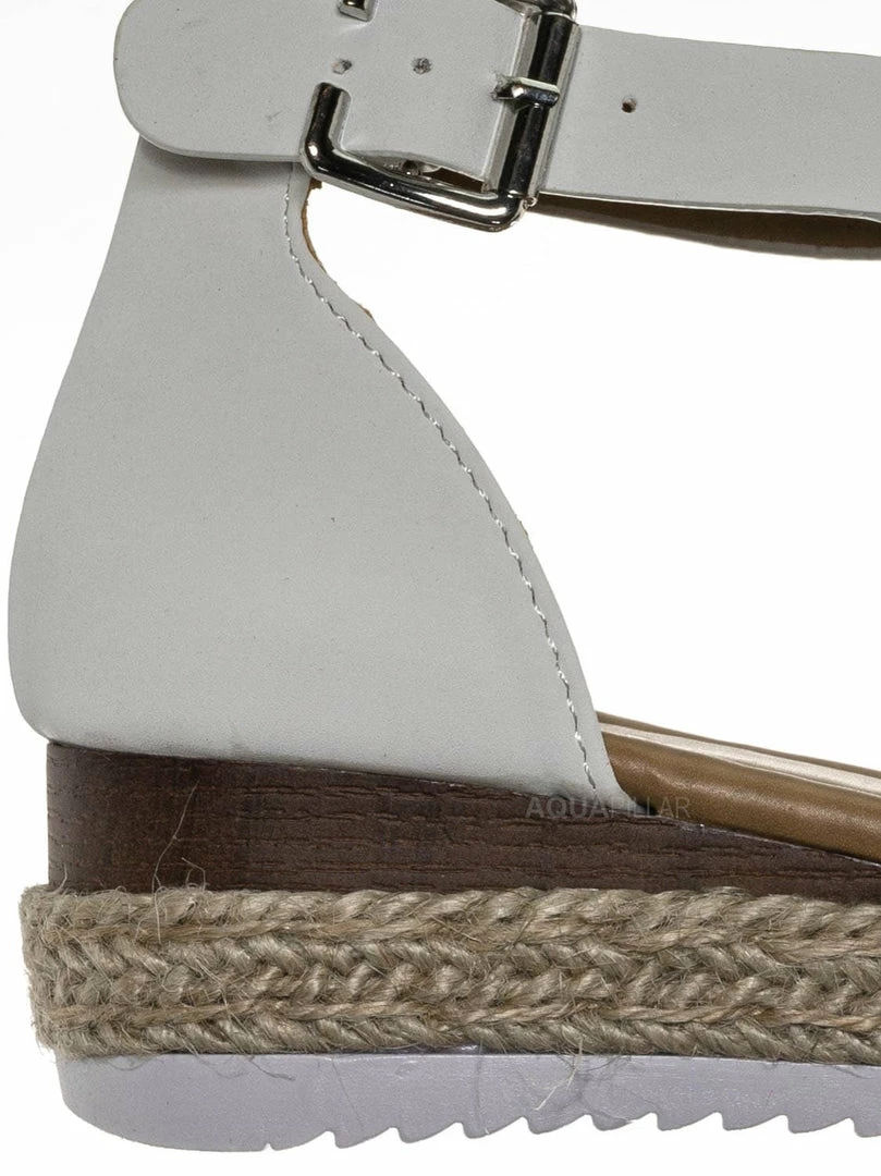 Product Detail : These vintage inspired platforms features a espadrille jute rope braided platform, wide brand, closed heel counter, thin adjustable ankle strap, lightly padded insole, wooden wedge, white threaded outsole and lightly padded insole.