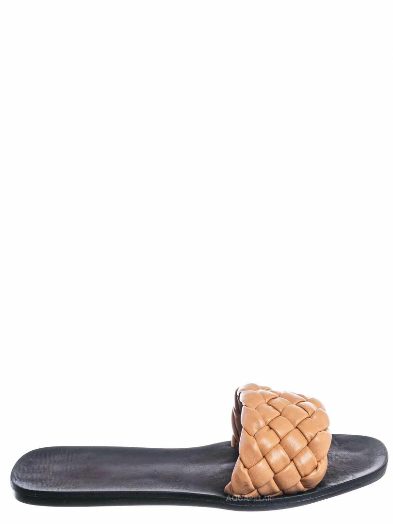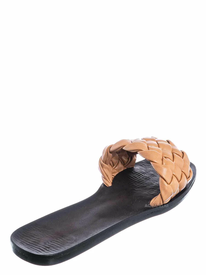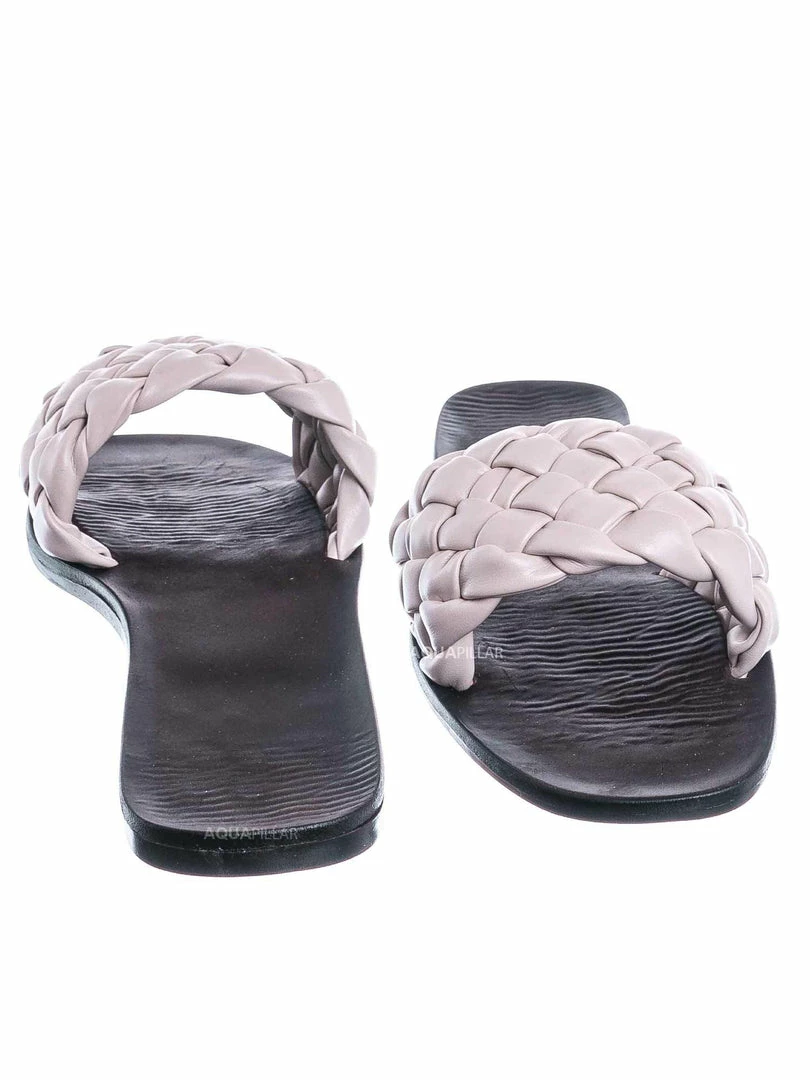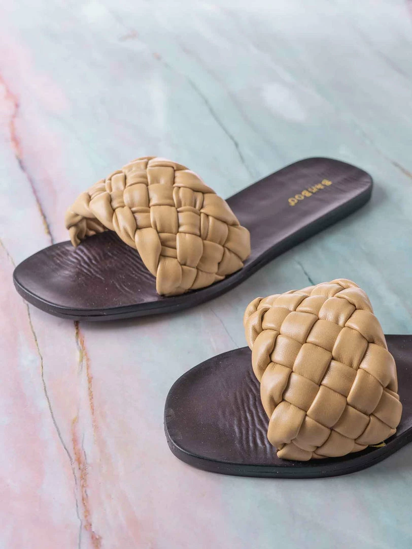 Product Detail : These dress sandals features a a flat insole, wide woven vamp and a puffy pillow like weave.