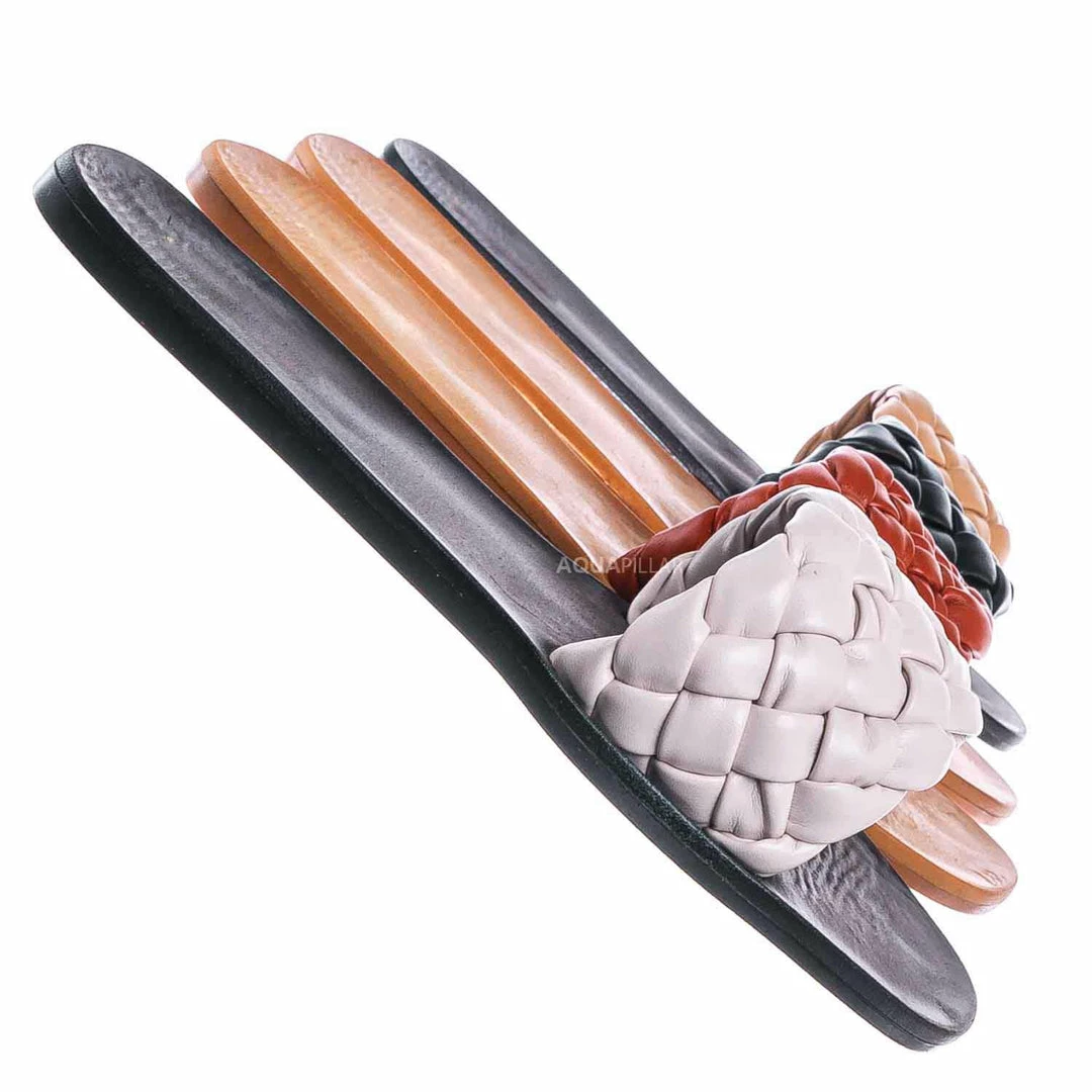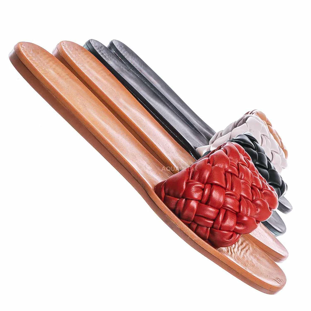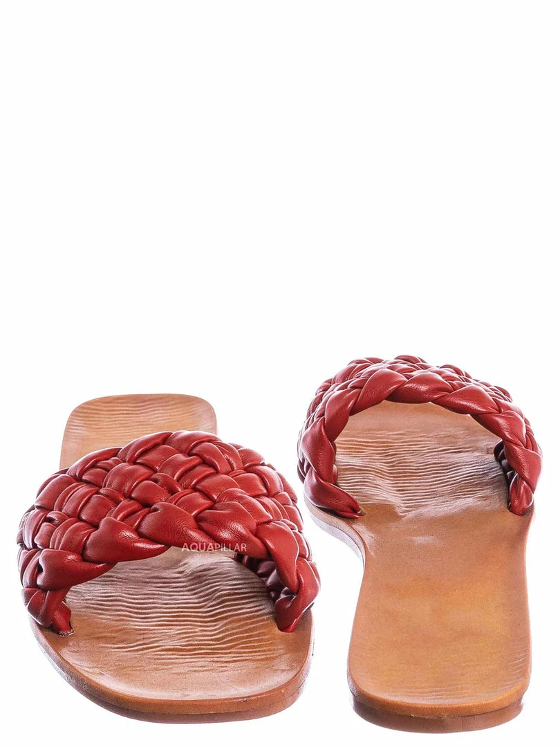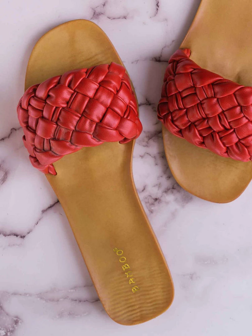 Product Detail : These dress sandals features a a flat insole, wide woven vamp and a puffy pillow like weave.