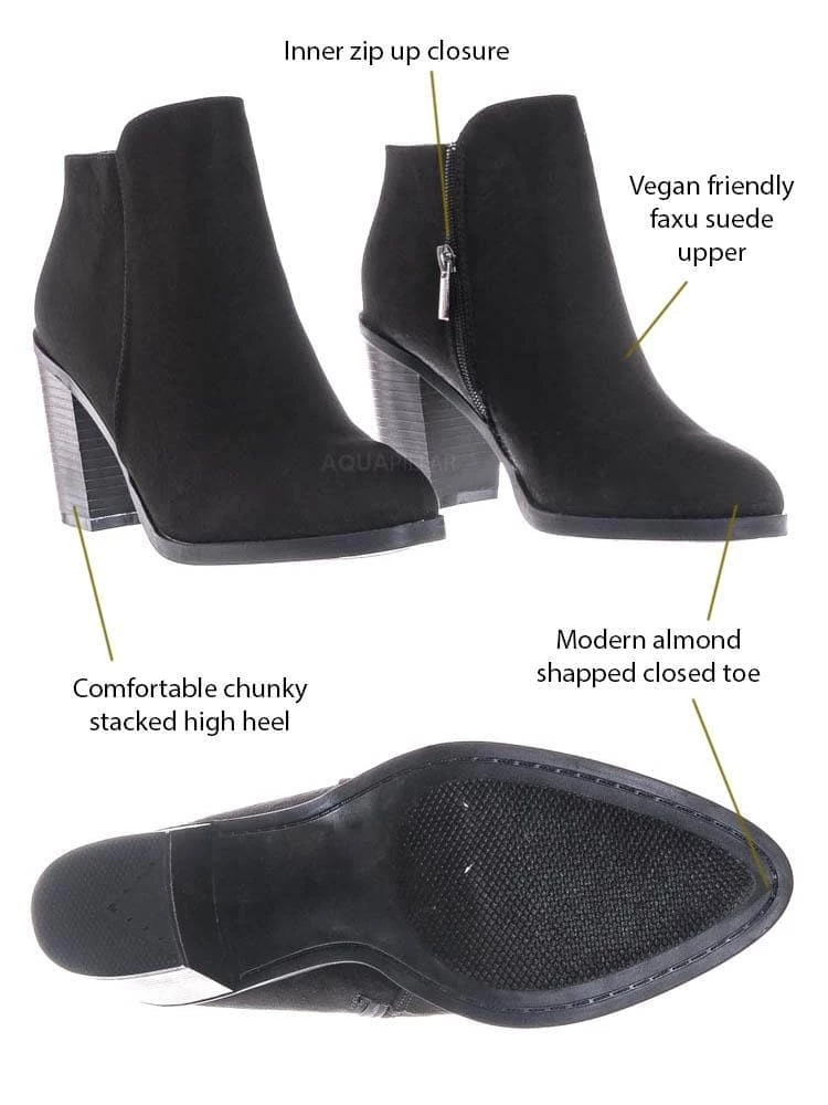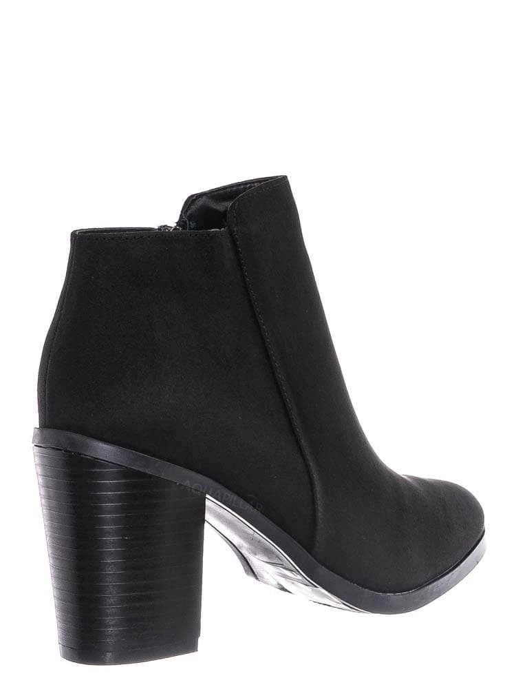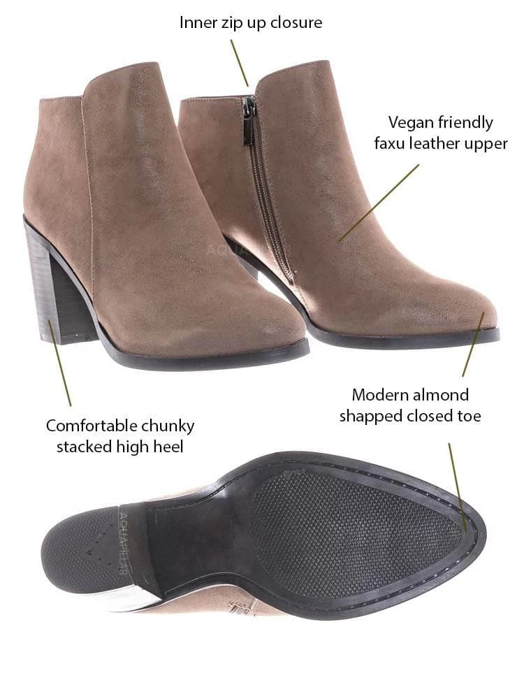 Product Detail : These dress boots features a classic minimalistic aesthetic, modern almond closed toe, chunky block heel, faux wooden stack heel and lightly padded insole.