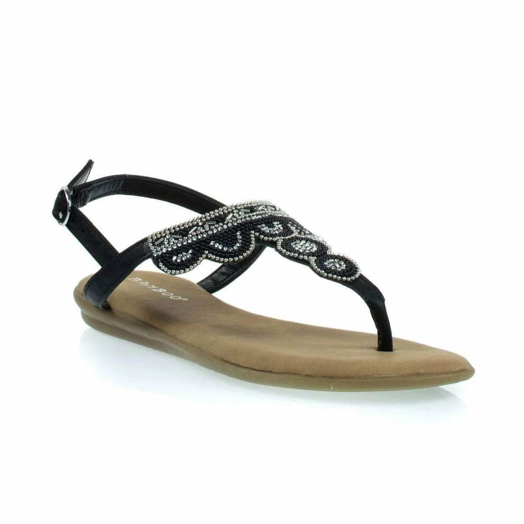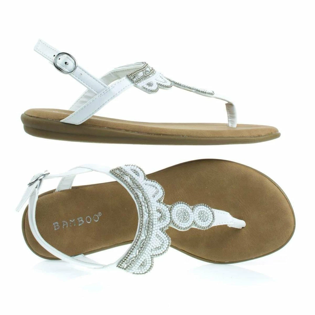 About This Shoes :Slip into these flats with super comfortable foam padding, thong strap, adjustable ankle strap and tribal inspired beads and rhinestone embelishment. Brand – Bamboo
