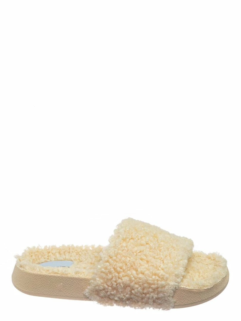 Product Detail : These slide in sandals features contouring molded footbed, padded faux fur shearling, fur embellished wide vamp.