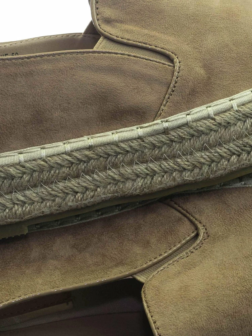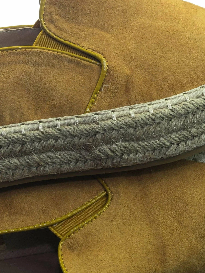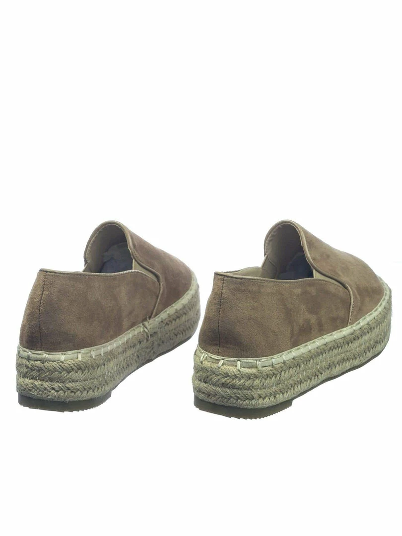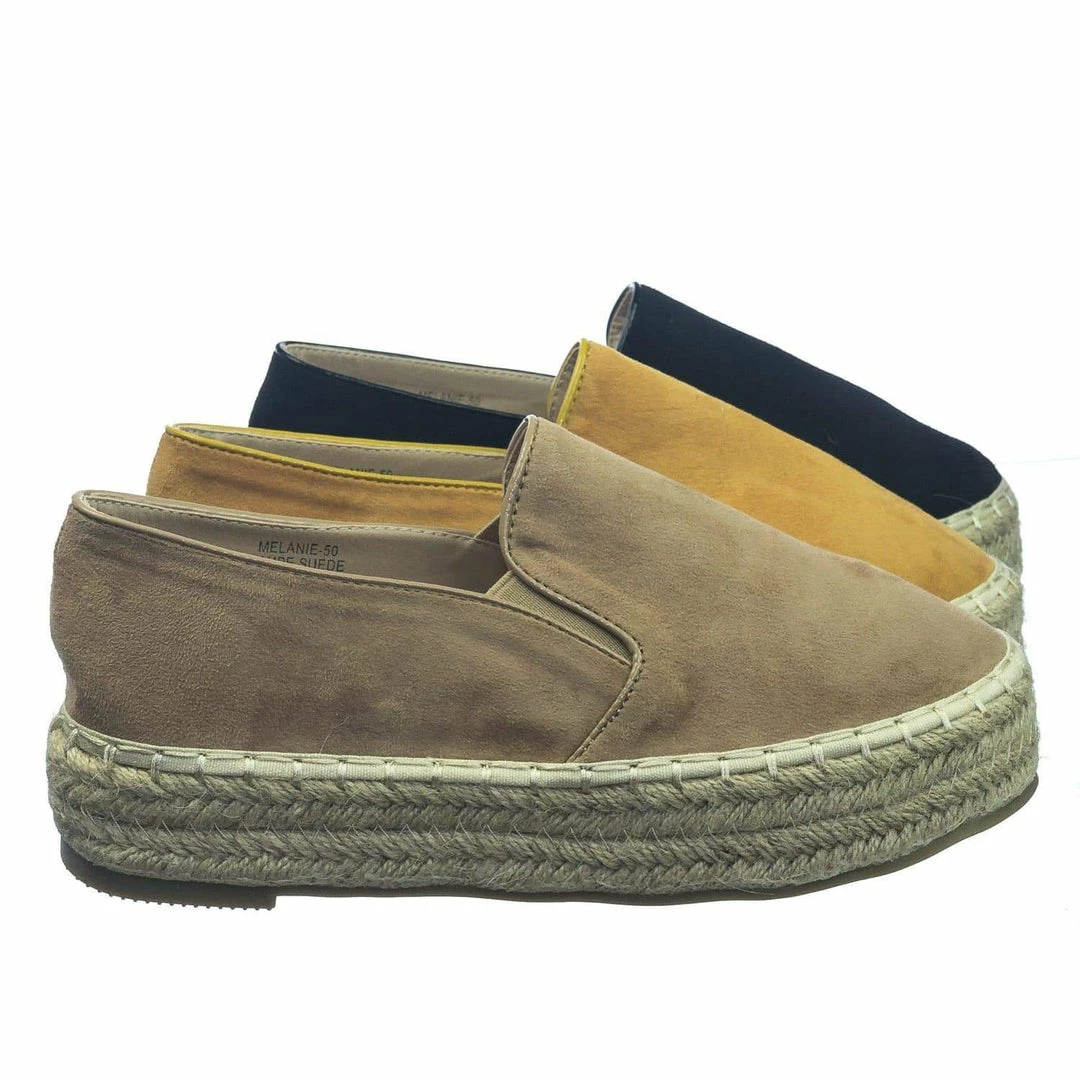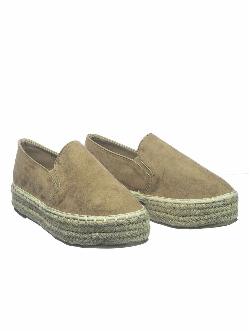 These slip on features a thick platform in jute wrap espadrille, slip on construction, elastic side gore for easy fitting and hallowed flatform for lightweight walking.