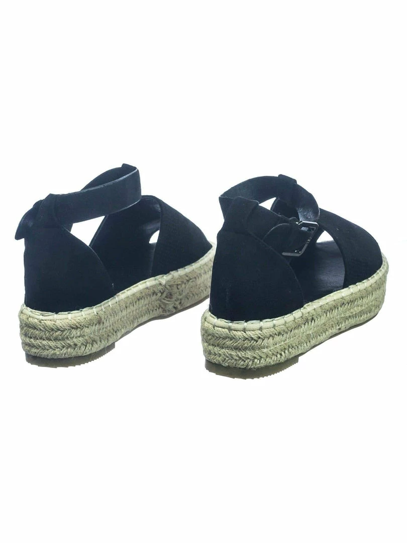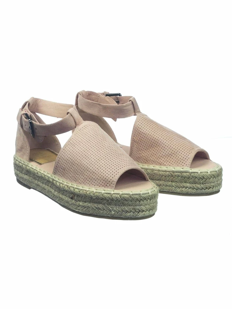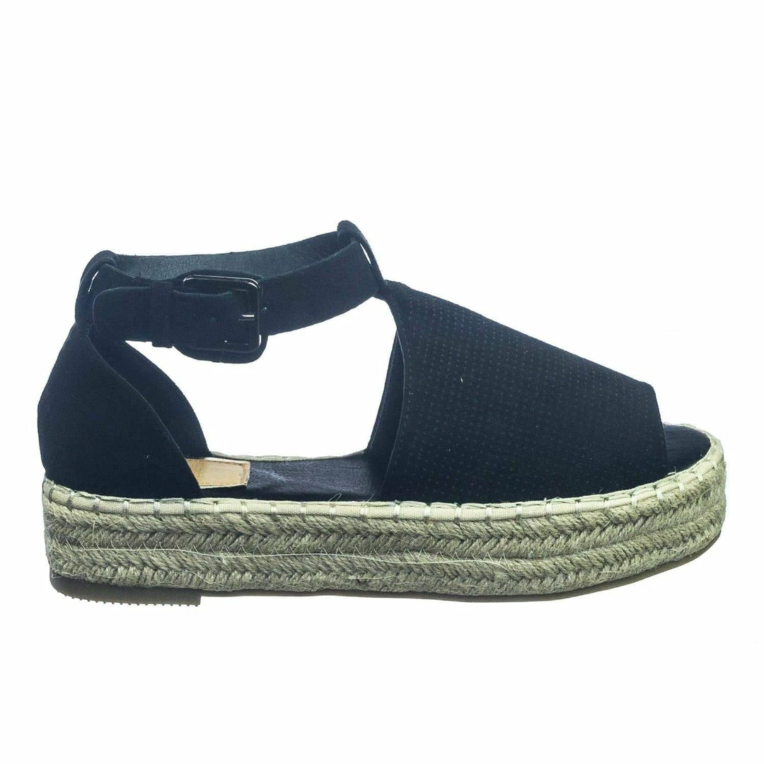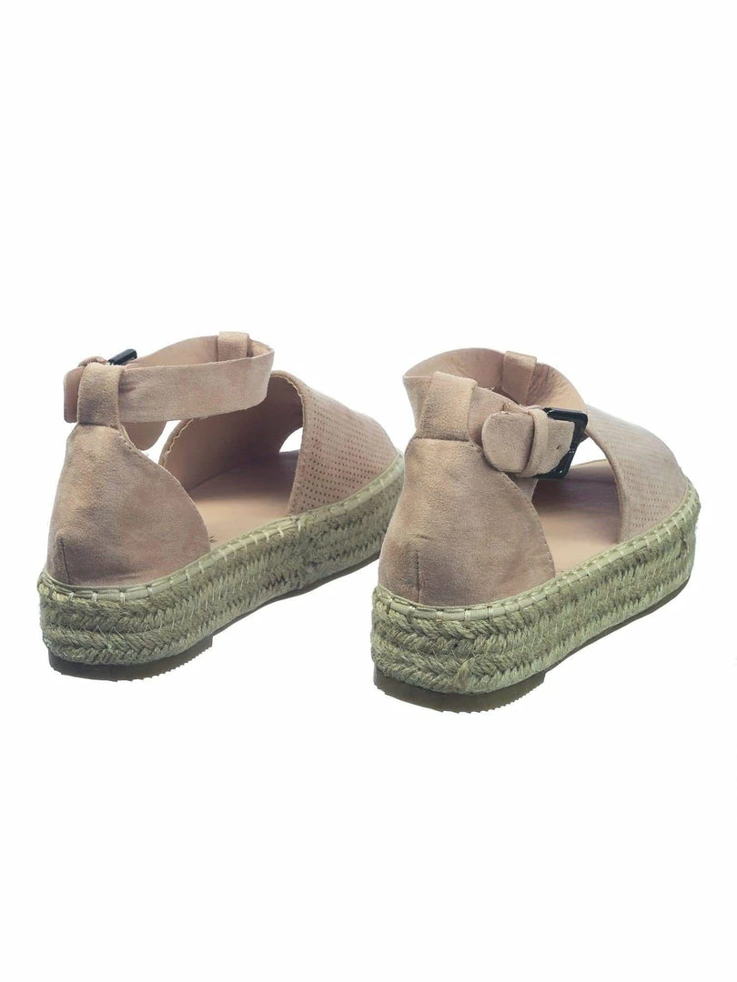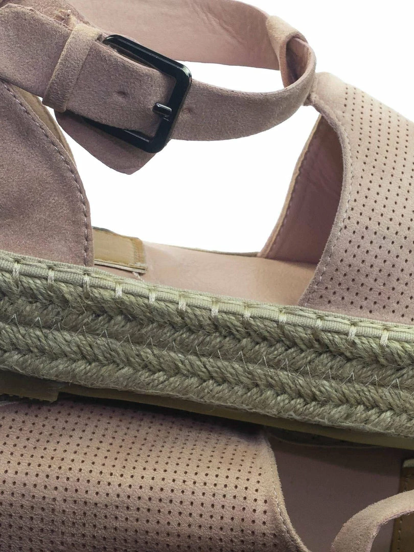 These flatform sandals features a thick espadrille jute wrapped platform, peep toe opening, double open side, perforated dot pattern, adjustable ankle strap, lightweight hallow platform and lightly padded insole. Note that the shoe labeled brown is very light, it’s more of a tan brown than a dark brown.