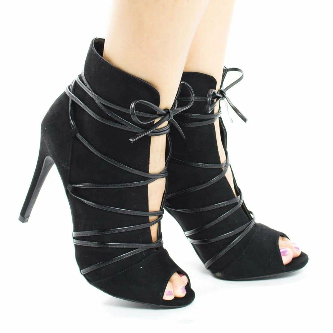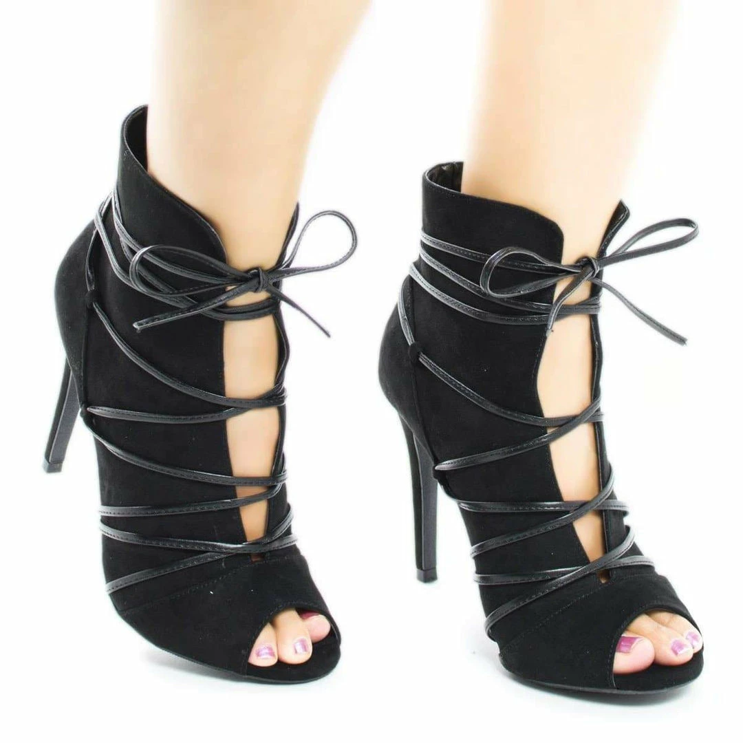 Berlin66 By Aquapillar, Peep Toe Lace Wrap Stiletto Heel Ankle Bootie New