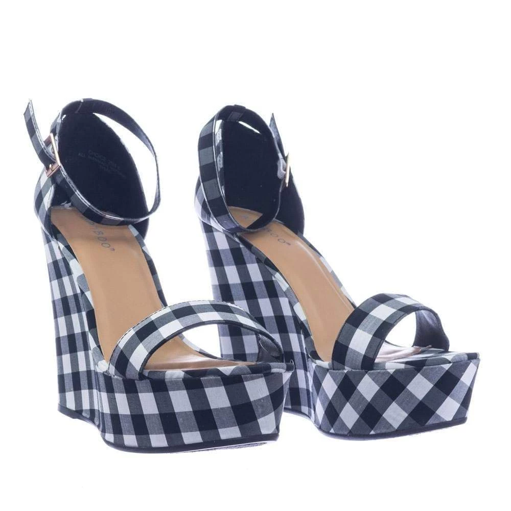 Choice25 By Bamboo Classic Platform Wedge Open Toe Dress Sandal In Gingham & Solid