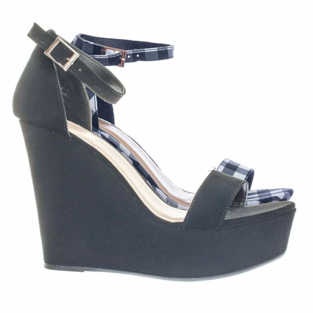 About This Shoes :These classic sandal features a towering high platform wedge, simple open toe construction, single foot strap, closed heel counter, adjustable ankle strap and lightly padded insole. Choose from Gingham checker print or solid colors Brand – Bamboo