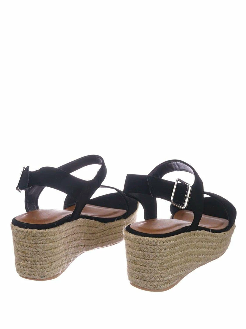 Product Detail : These sandals features a low wedge in espadrille jute wrope covered platform, open toe construction, two piece quarter strap, adjustable pin buckle and lightly padded insole.
