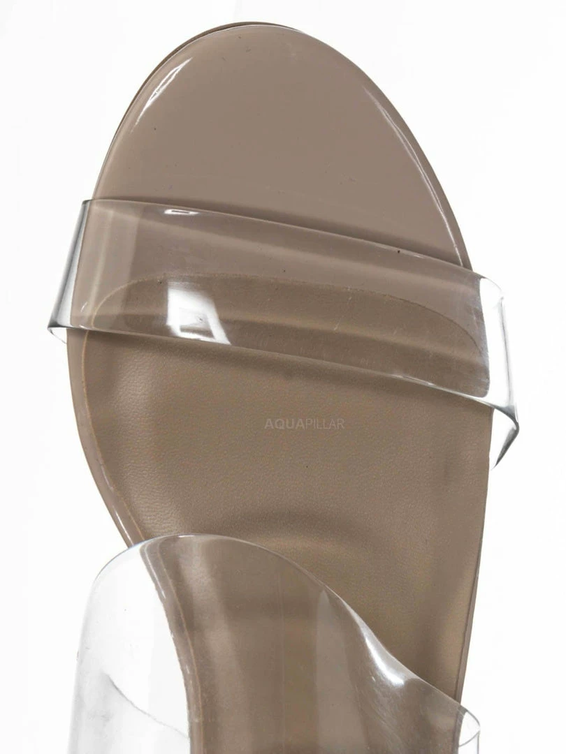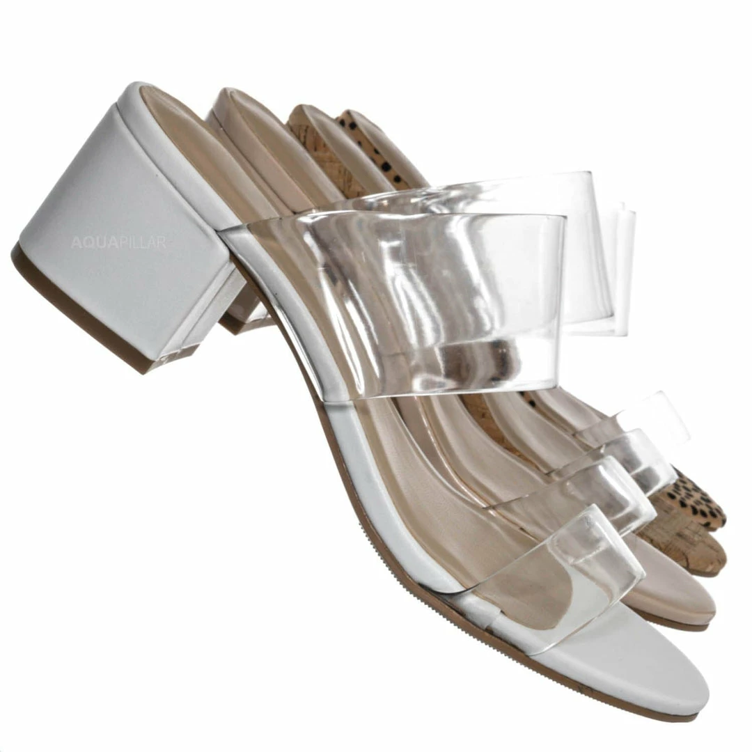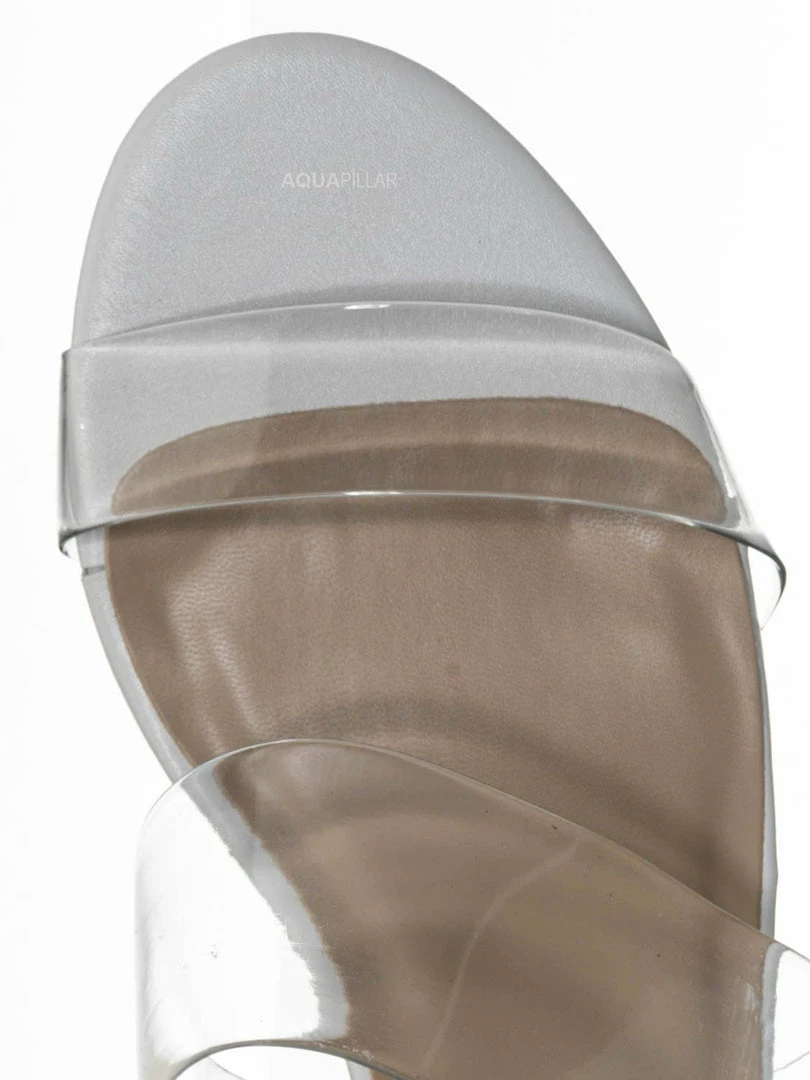 Product Detail : These dress sandals features a see through pvc twin strap, chunky block high heel, 90’s inspired retro minimalist silhouette, open toe construction and lightly padded insole.