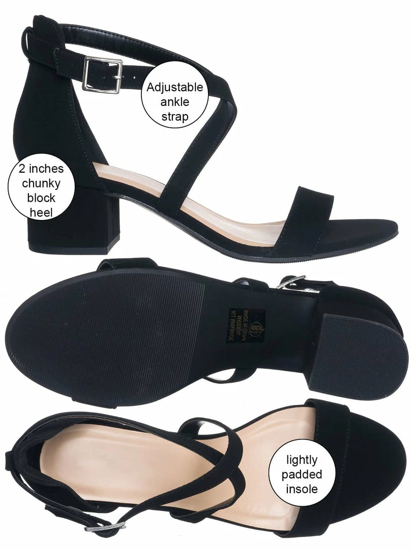 Cómodo tacón bajo de 2 pulgadas de alto sobre tacón de bloque grueso