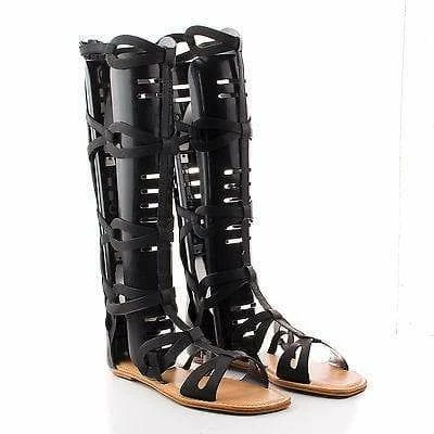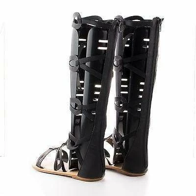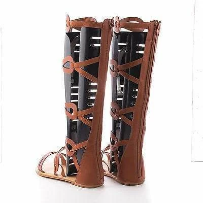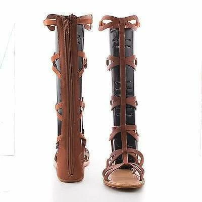 Be summer ready with these trendy gladiator caged sandals, featuring an open toe, contrast stitching, a caged strappy look attached to elastic straps, a back center zipper for easy wear and closure, a slightly padded insole for comfort, an approximate 14 inch high shaft, and an approximate 0.25 inch low heel. (Please note that these measurements are based on a size 6). Style fits true to size. Available Black, Tan (Brown), etc. All man made materials. By Bamboo Shoes. .