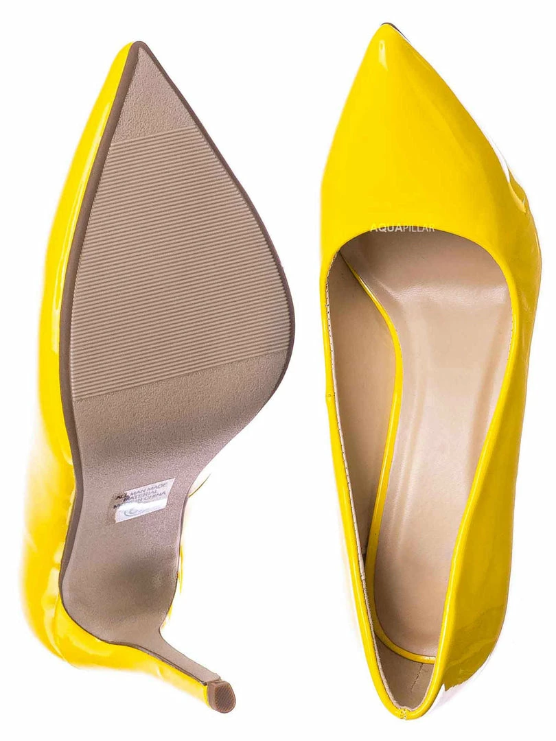 Elegante vestido de silueta salón con puntera cerrada en punta.