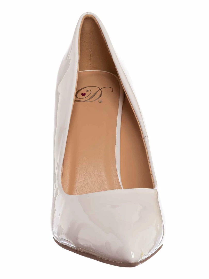 Elegant dress pump silhouette with pointed closed toe.