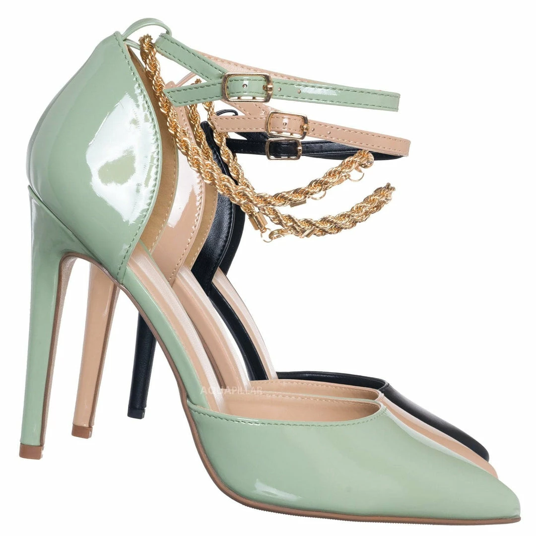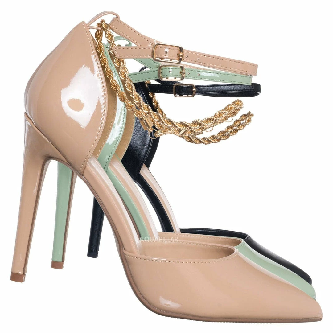 Benefits : Dress up in these feminimin chain link pumps. These are available in teenage/adult sizes. The size listed is in US Women’s Shoe Size System, please convert this to Men’s or any other systems using the conversion chart.