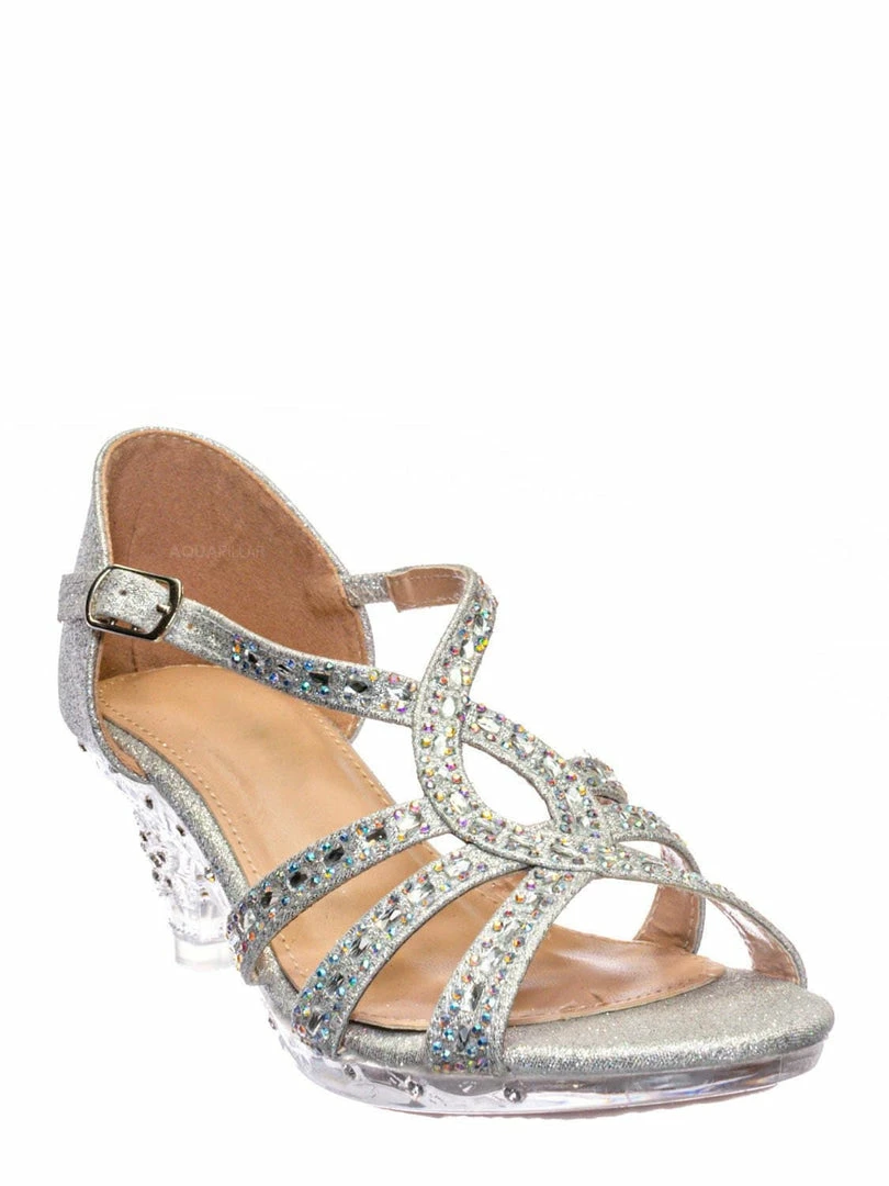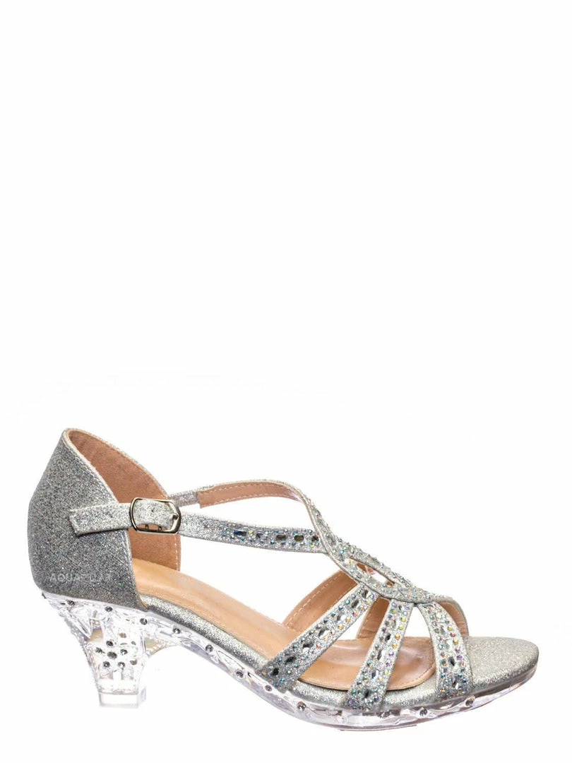 Fabulous Lyla6 Girls Rhinestone Crystal Sandal- Childrens Open Toe Glass Heel Sandals New