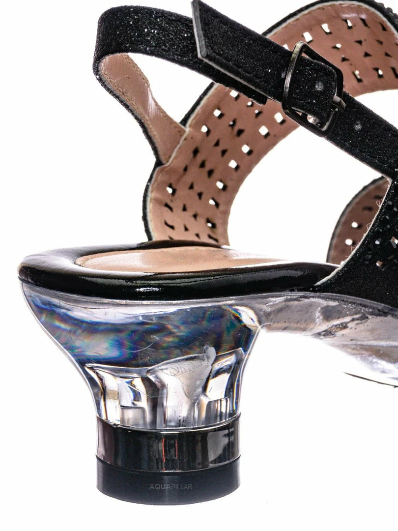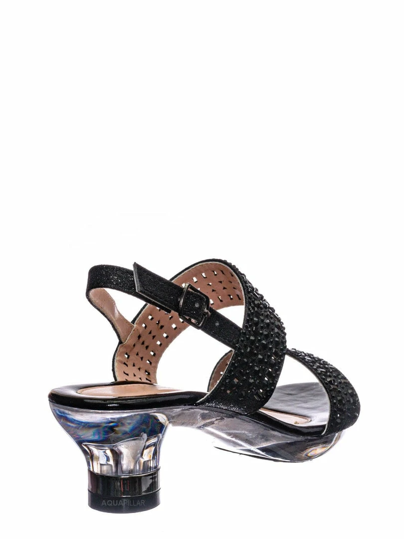Product Detail : These pumps are for little girls that features all over rhinestone jewel embellishments, plexi-glass / acrylic outsoles, clear transparent/lucid round mid height heel, thick double strap, side hidden elastic, open rounded toe, multi strap design, glitter fabric, adjustable pin needle buckle, lightly padded insoles and man made outsoles. Note: There may be glue imperfections for all color ranges from the outsole.