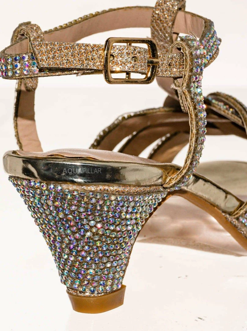 Benefits : Have you little girl be the life of the party in these shimmering crystal sandals.