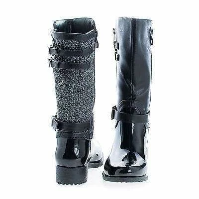 Forever Link Carrie63K By Link, Children Girls Knee High Tweed & Buckle Lug Sole Rain Boots New