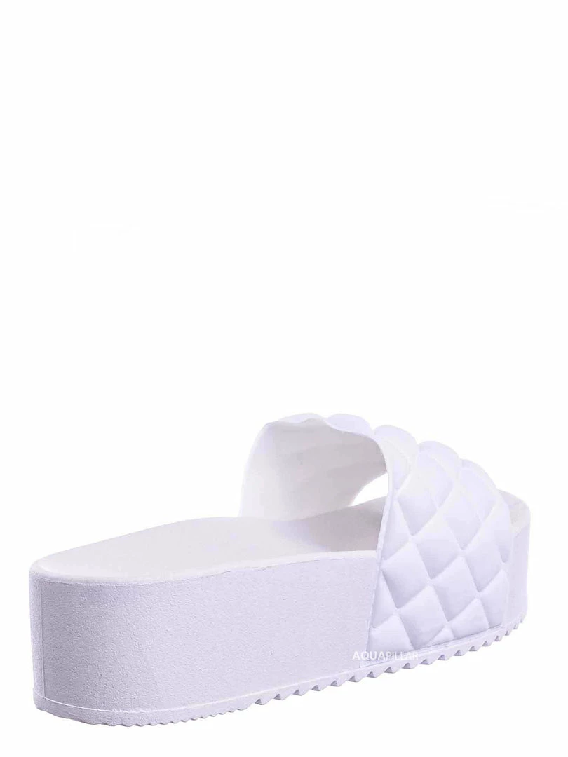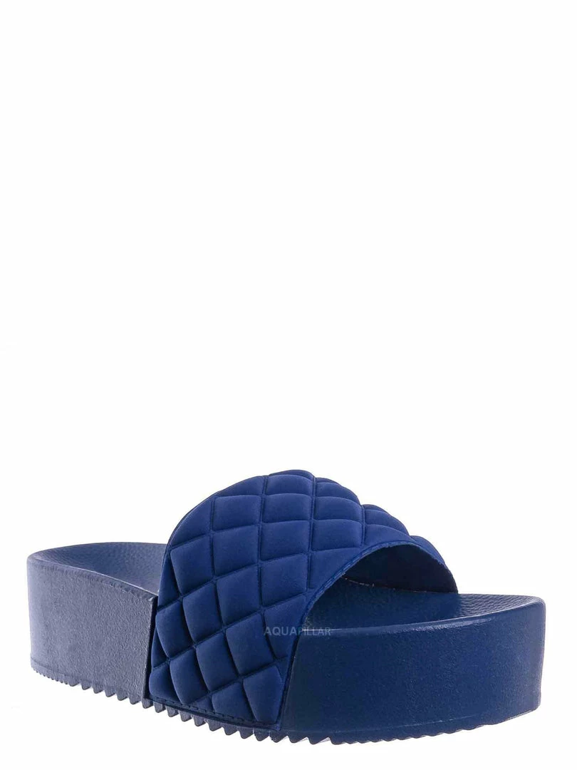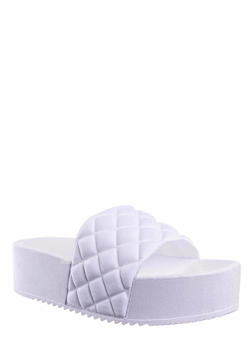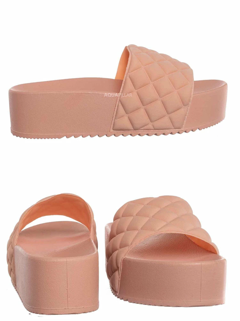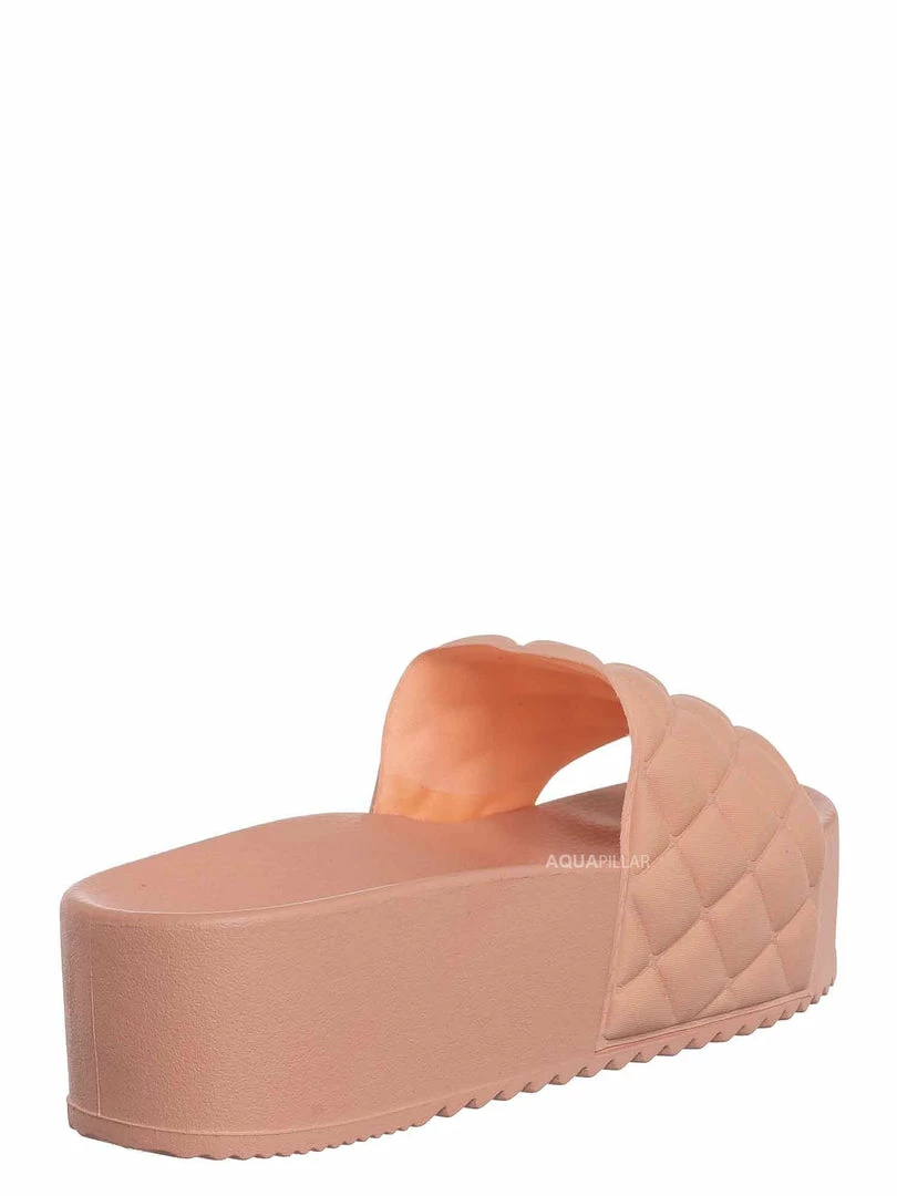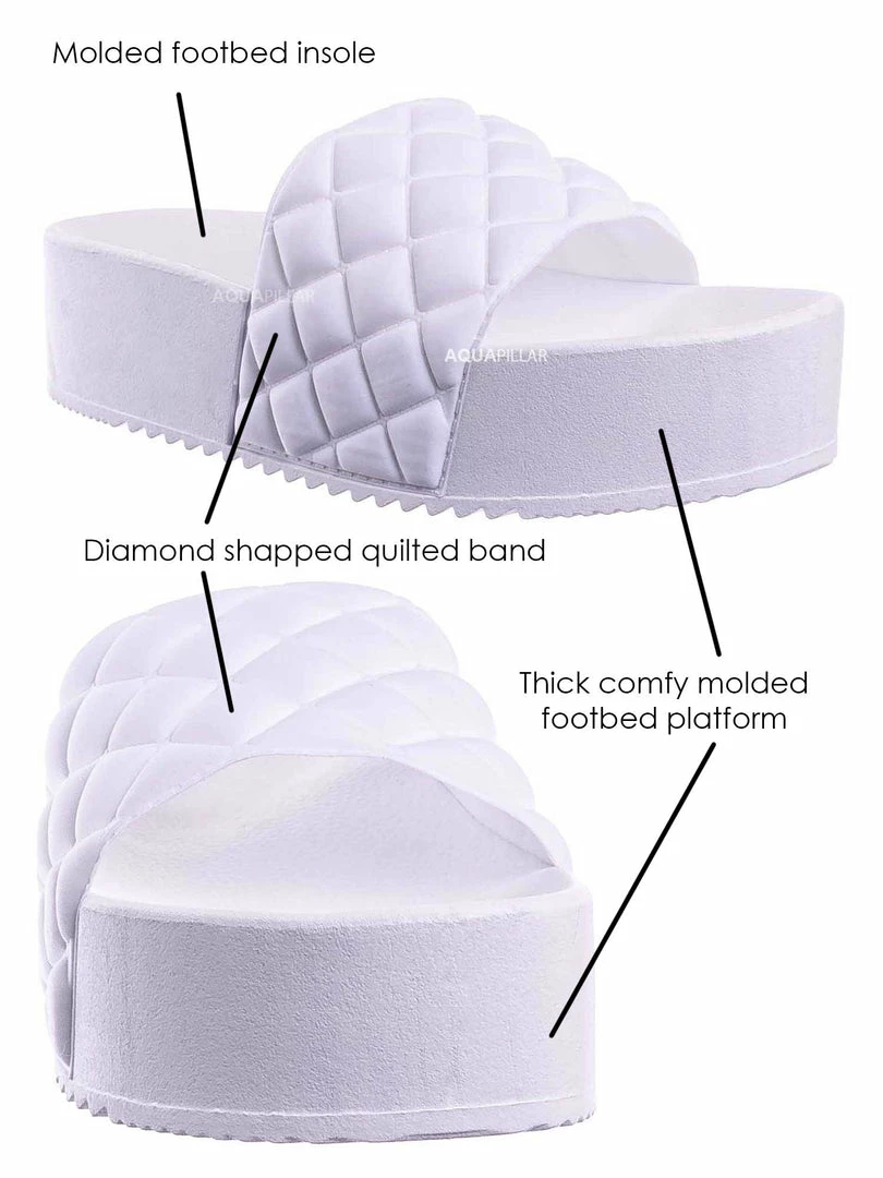 Product Detail :These flatform features a high platform with little heel drop and a comfy contoured footbed insole. The upper features a stylish diamond shaped quilted design and shark tooth threaded outsole