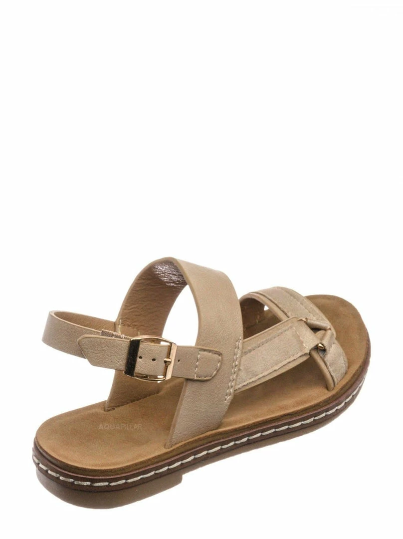 Product Detail : These sandals for little girls features a soft flexible yoga footbed, soft comfortable molded contoured micro fiber insole, sportswear inspired strappy design, adjustable sling back strap, pin buckle closure, contrast stitching on the outsole and hardware detail.