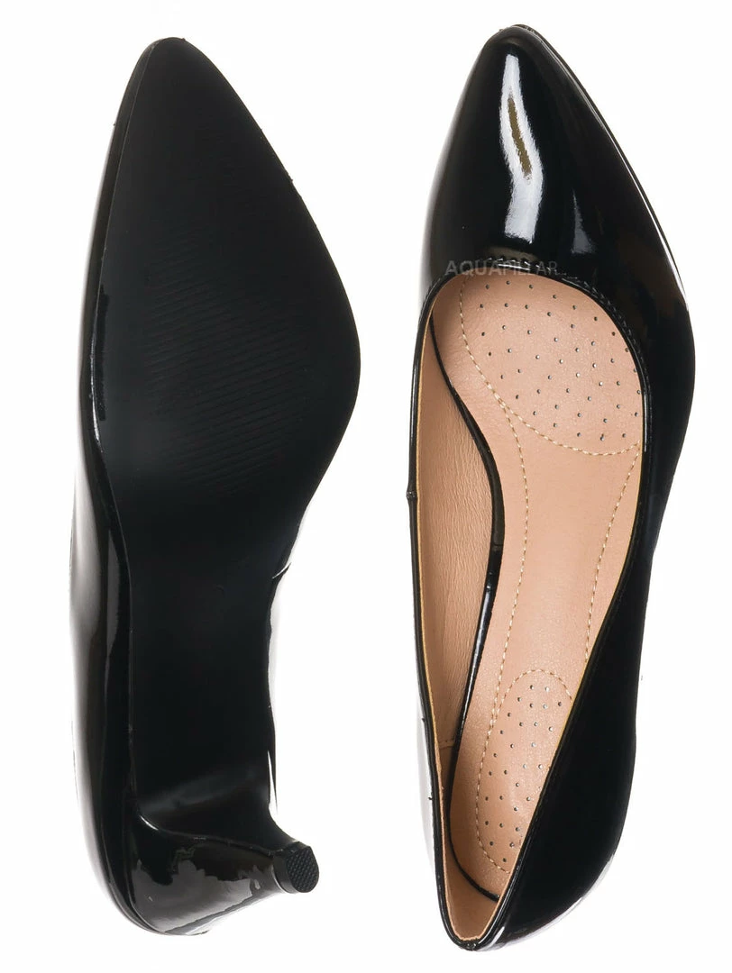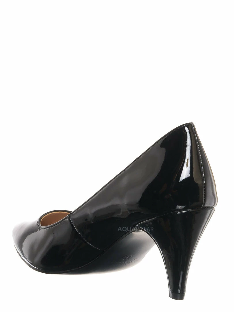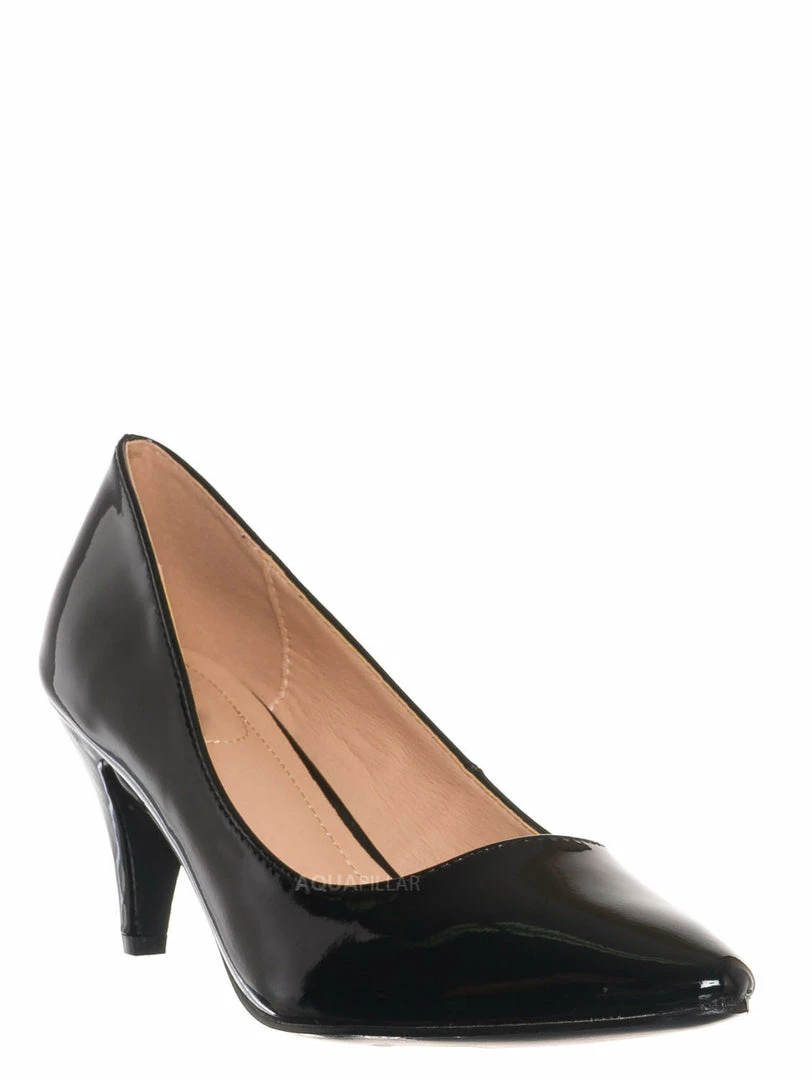 This low heel dress pump features a sophisticated pointed close toe, soft foam padded insole, and low heel. Slide in and out of the heel with the easy-to-slip-on construction.