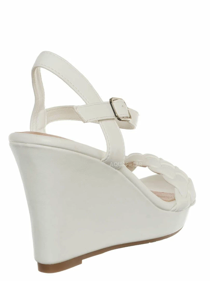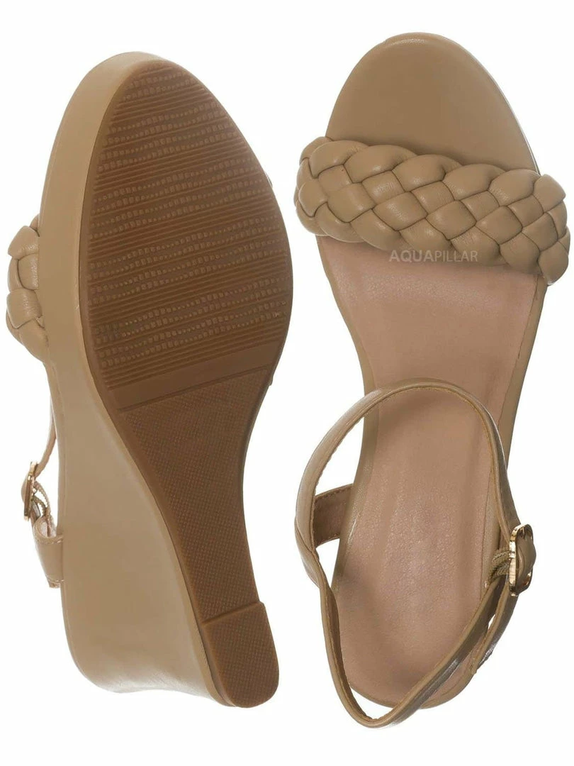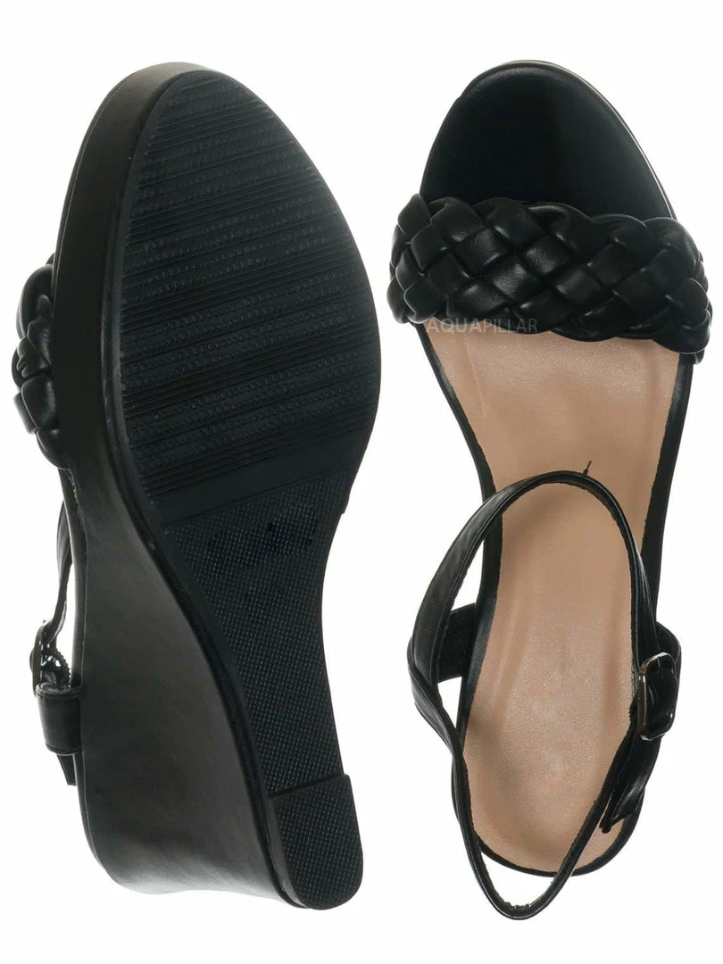 Product Detail : This woven sandal features a modest height platform wedge with woven/braided foot strap. The sandal can be secured with the thin quarter strap with adjustable pin-buckle closure.