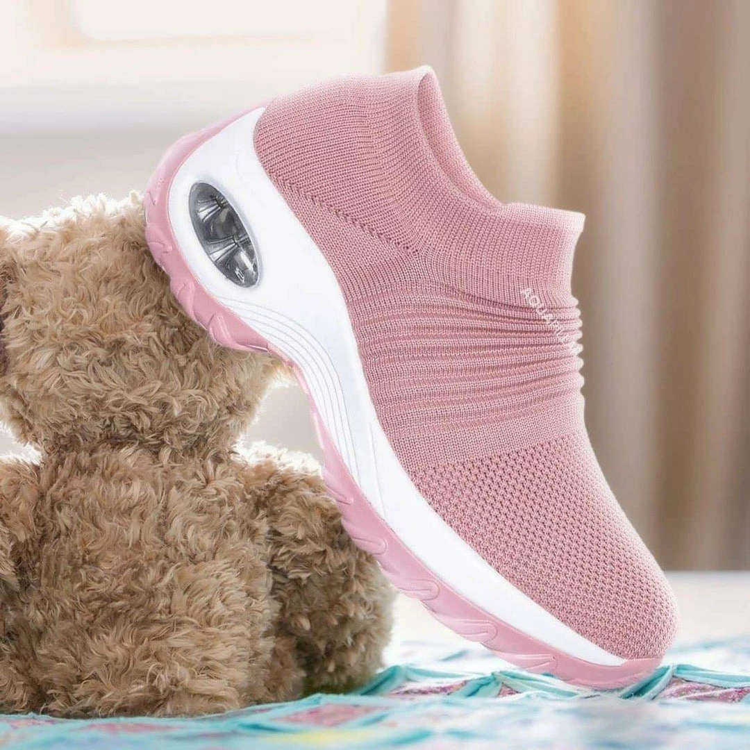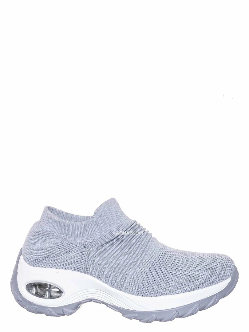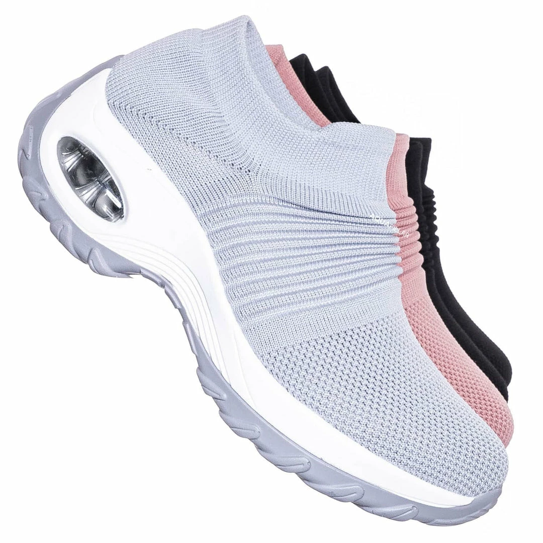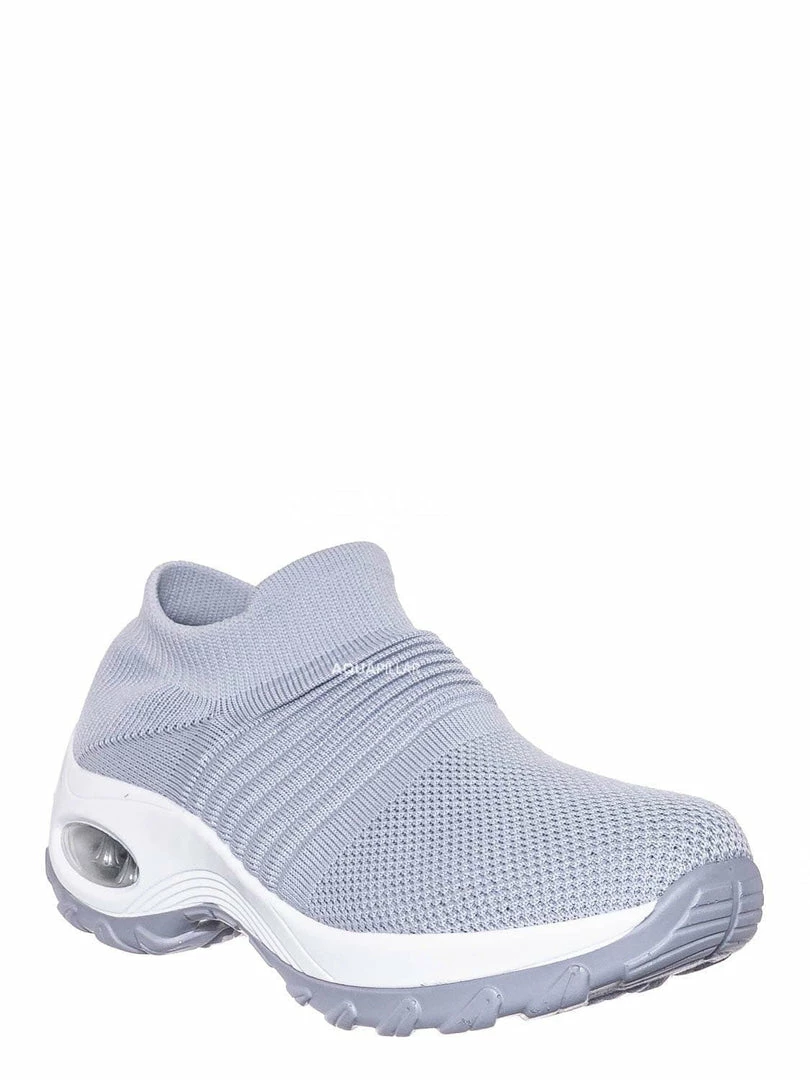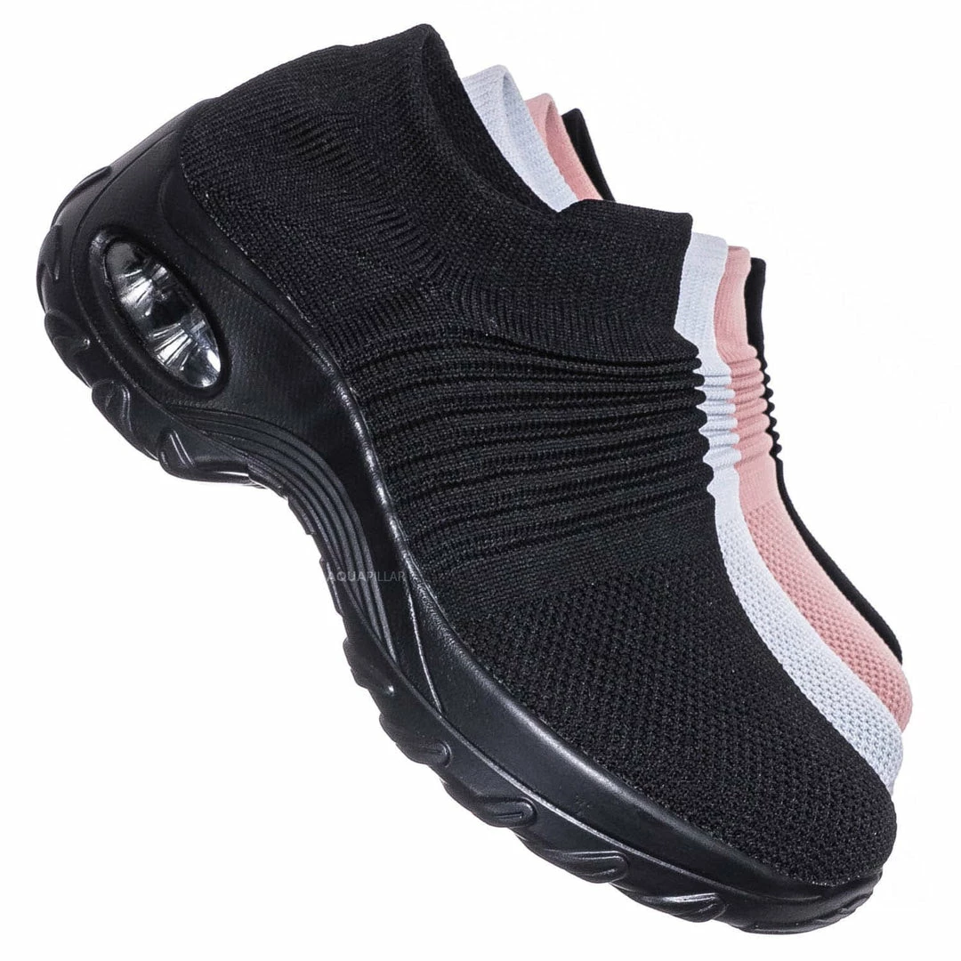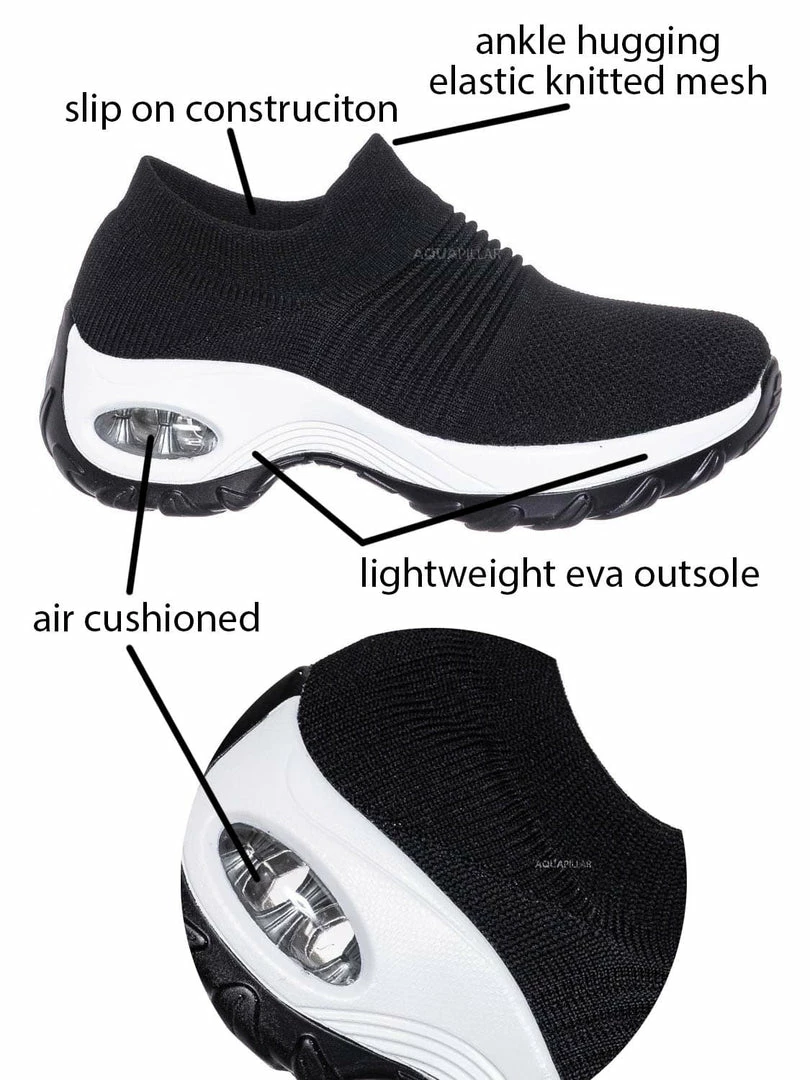 Product Detail : These sneakers features a lightweight rubber outsole, removable insoles, shock absorbing air cushioned heel sole, ankle hugging stretch knit mesh fabric, rounded closed toe, slide in construction and padded insole.