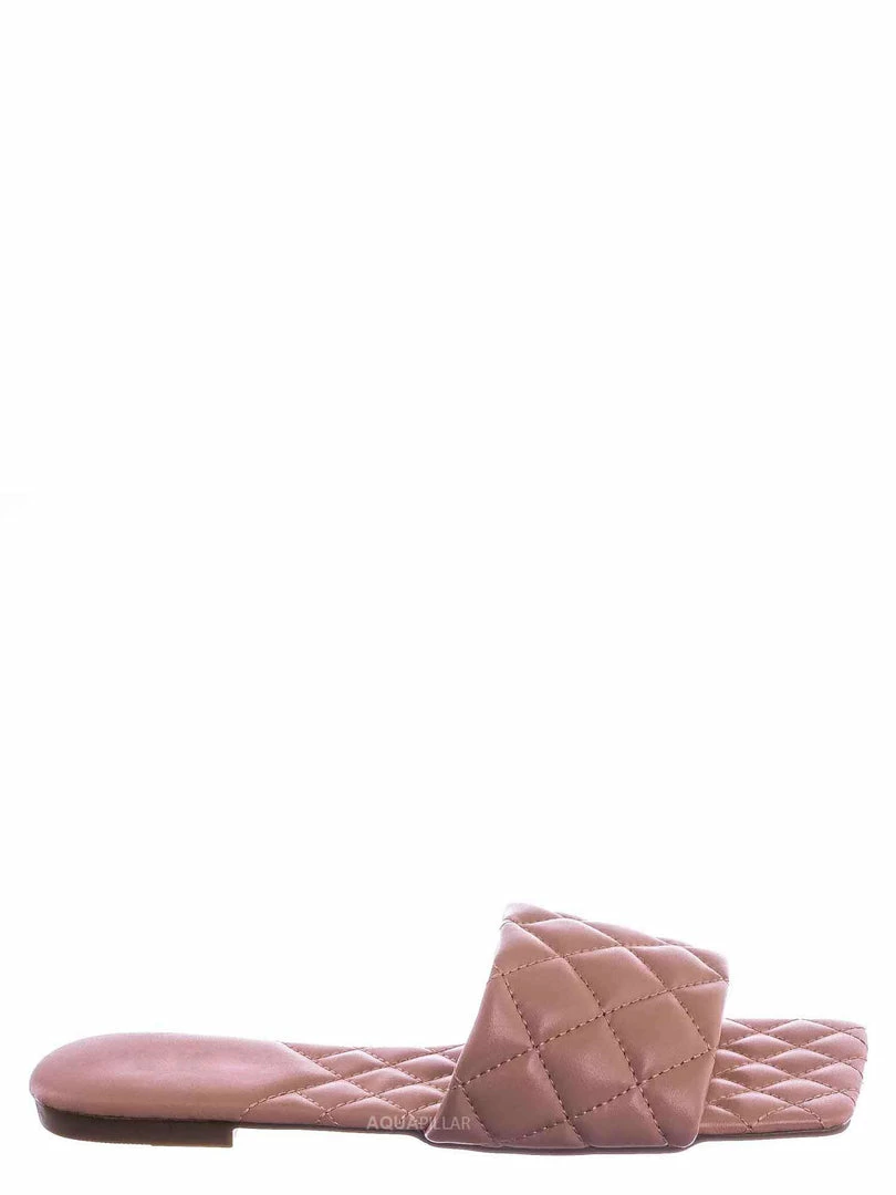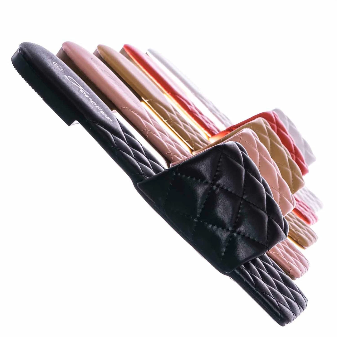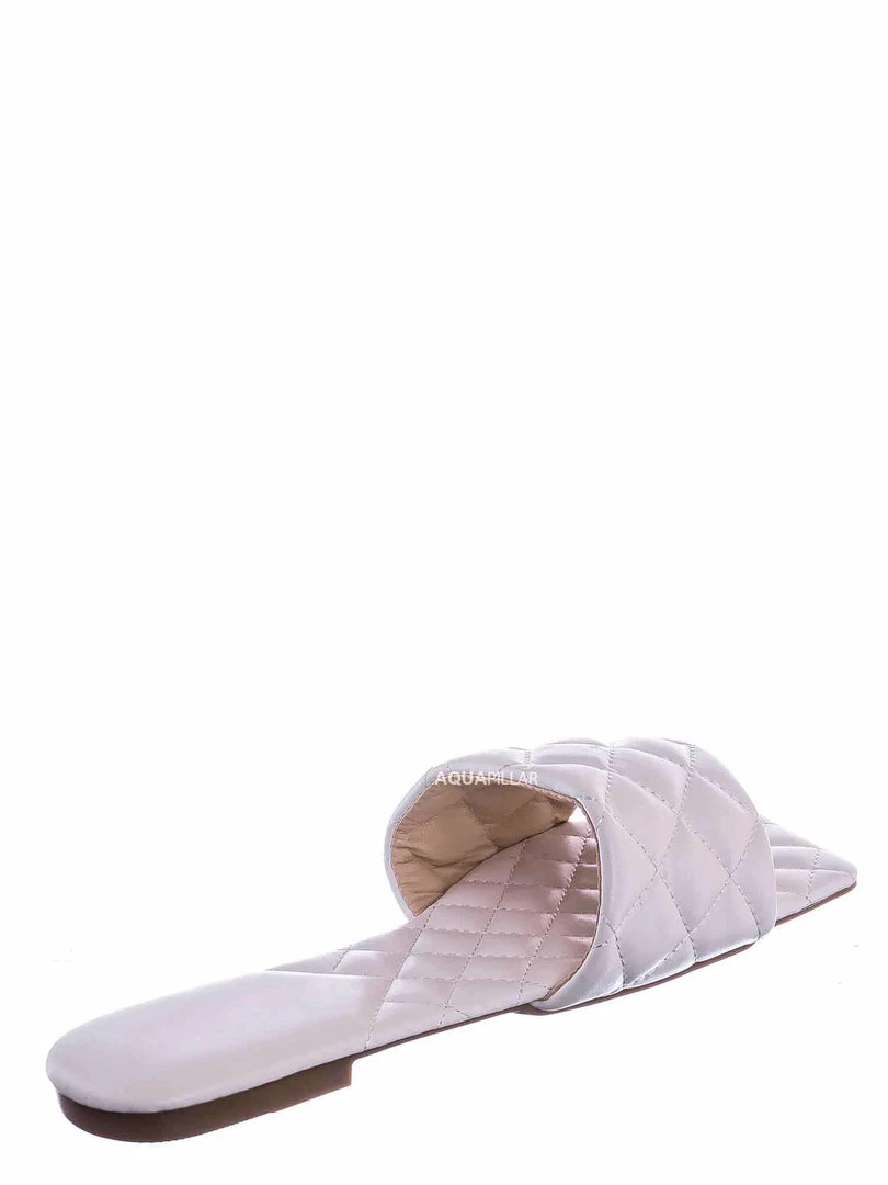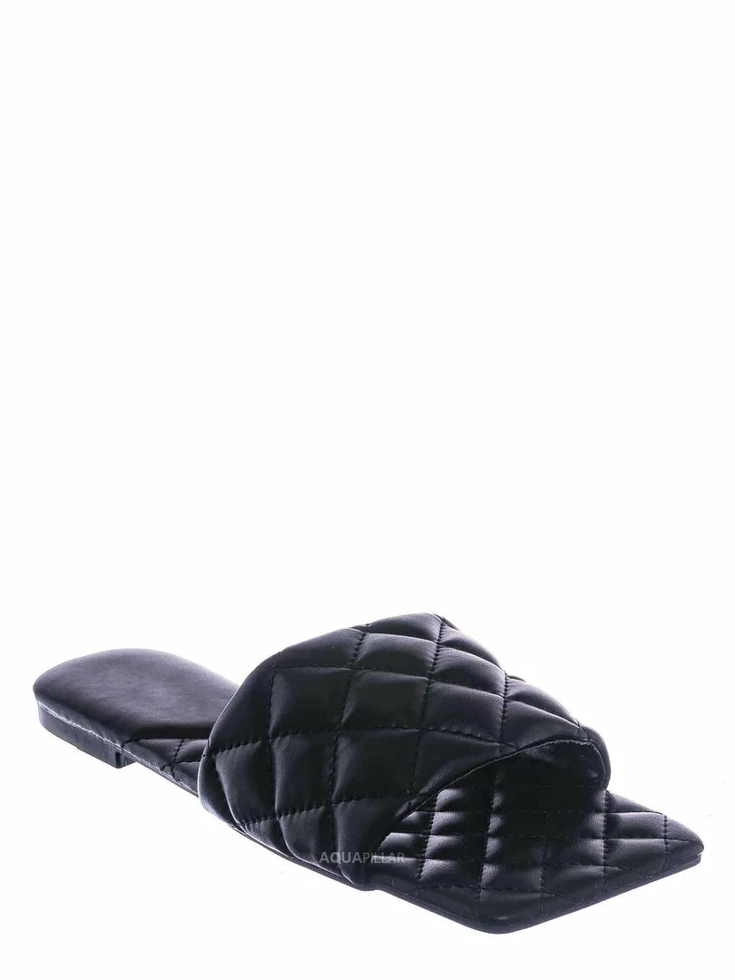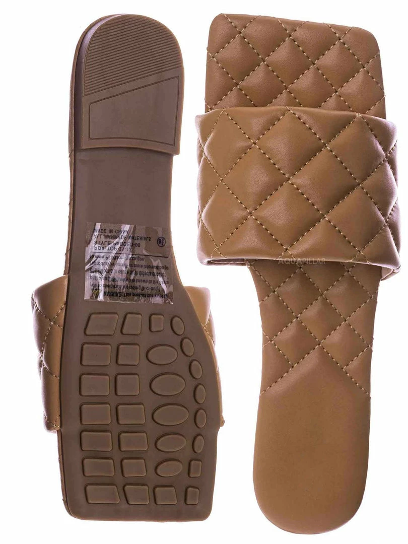 Product Detail : These slides slipper features a elonged square toe, diamond shaped puffy quilted stitching, single band slide in construction and quilted insole. The insole is also puffy padded and a puffy quilted insole for extra comfort, the elongated square toe provides extra toe space and conversation starter.