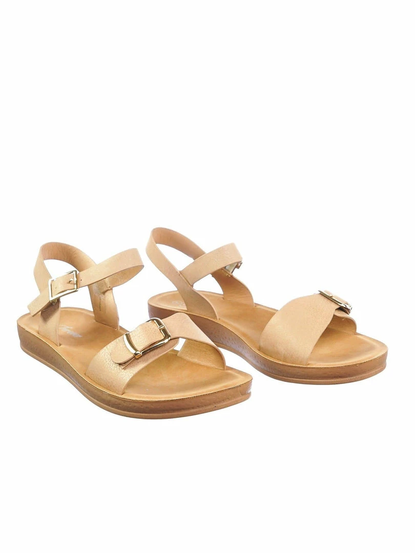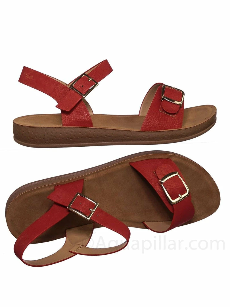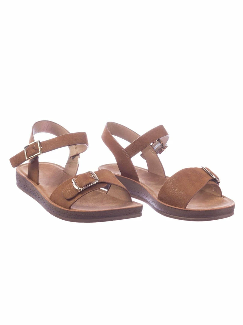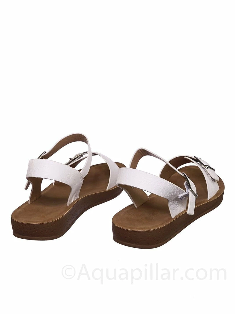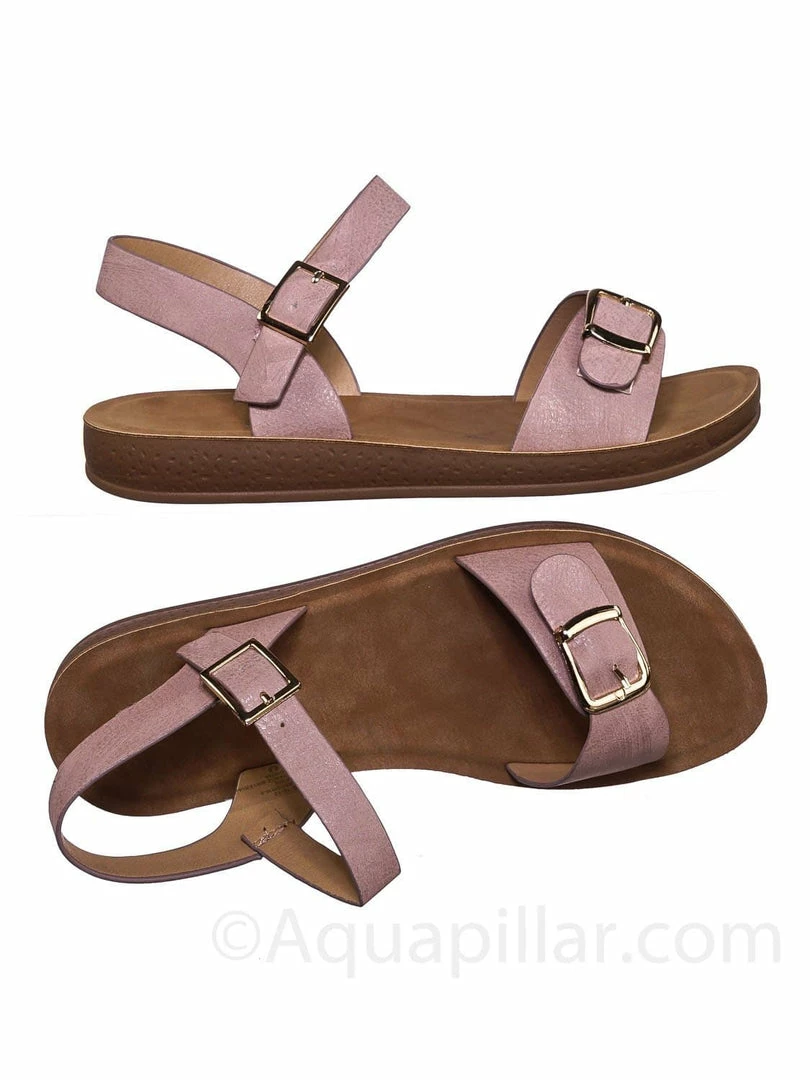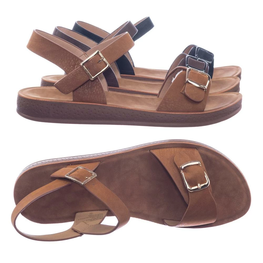 Product Detail : Get comfy with these rubber Flatform sandal featuring a thick padded outsole, decorative buckled foot strap and adjustable ankle straps.