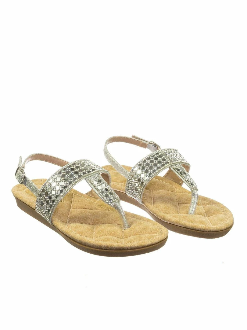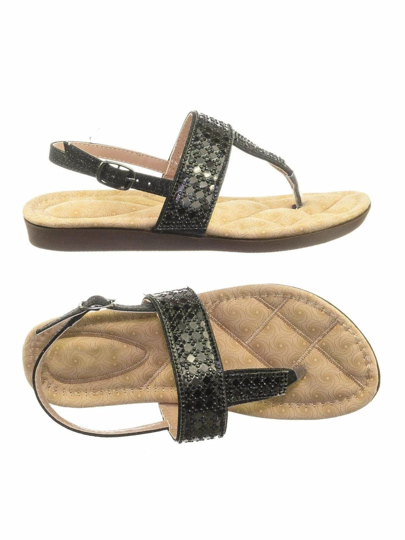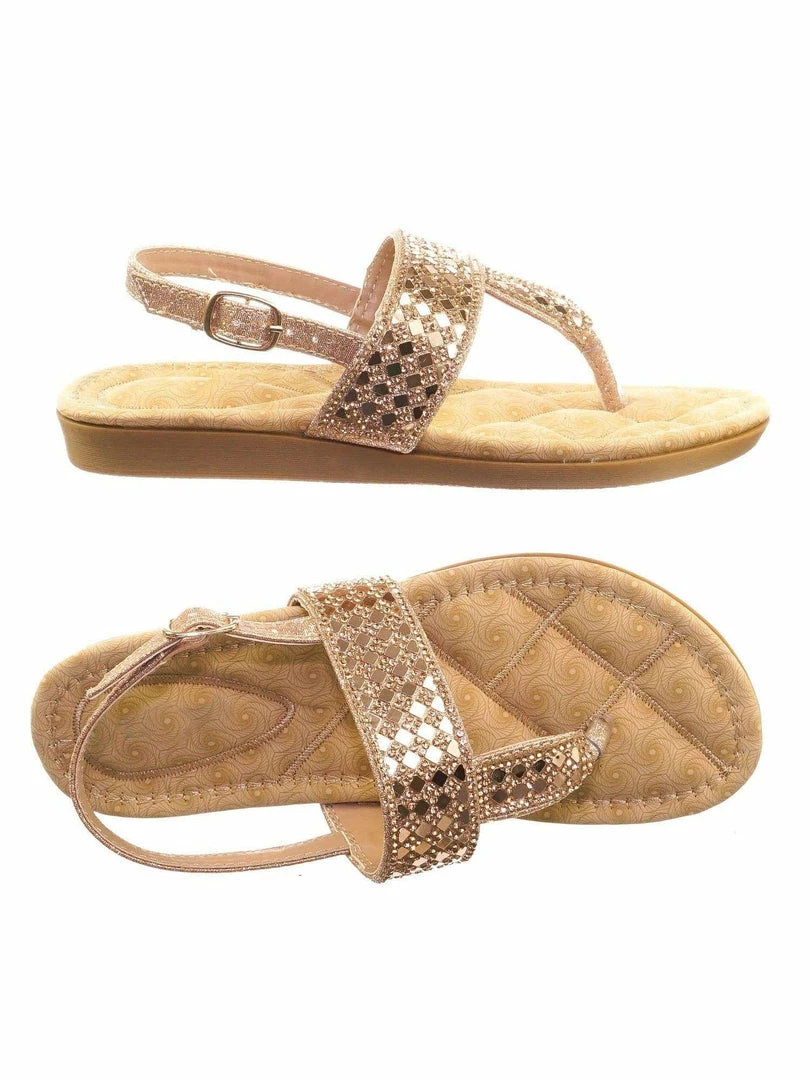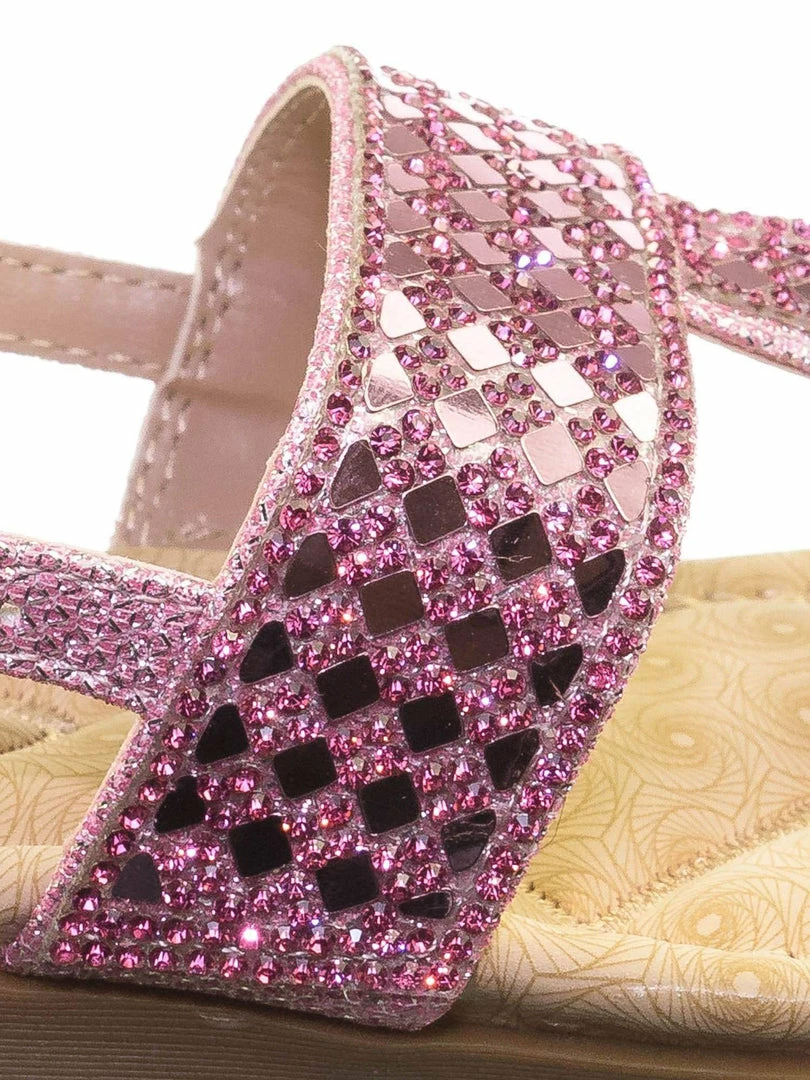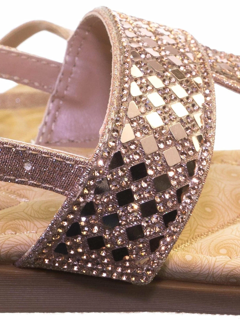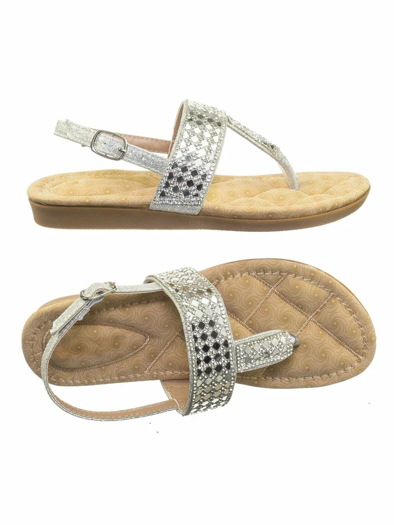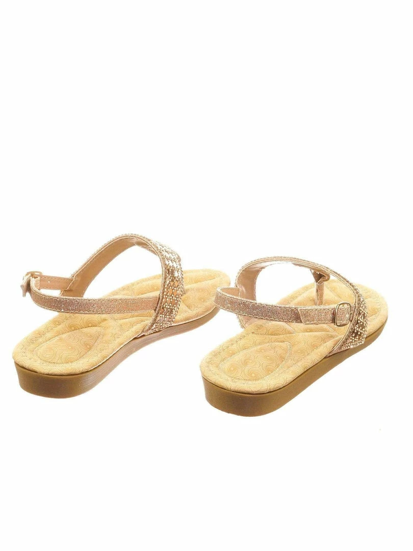 About This Shoes :Bling up your girls in these comfortable soft foam padded insole on low wedge, adjustable sling back strap in glitter and rhinestone crystal embellished thong strap. Brand – Forever Link