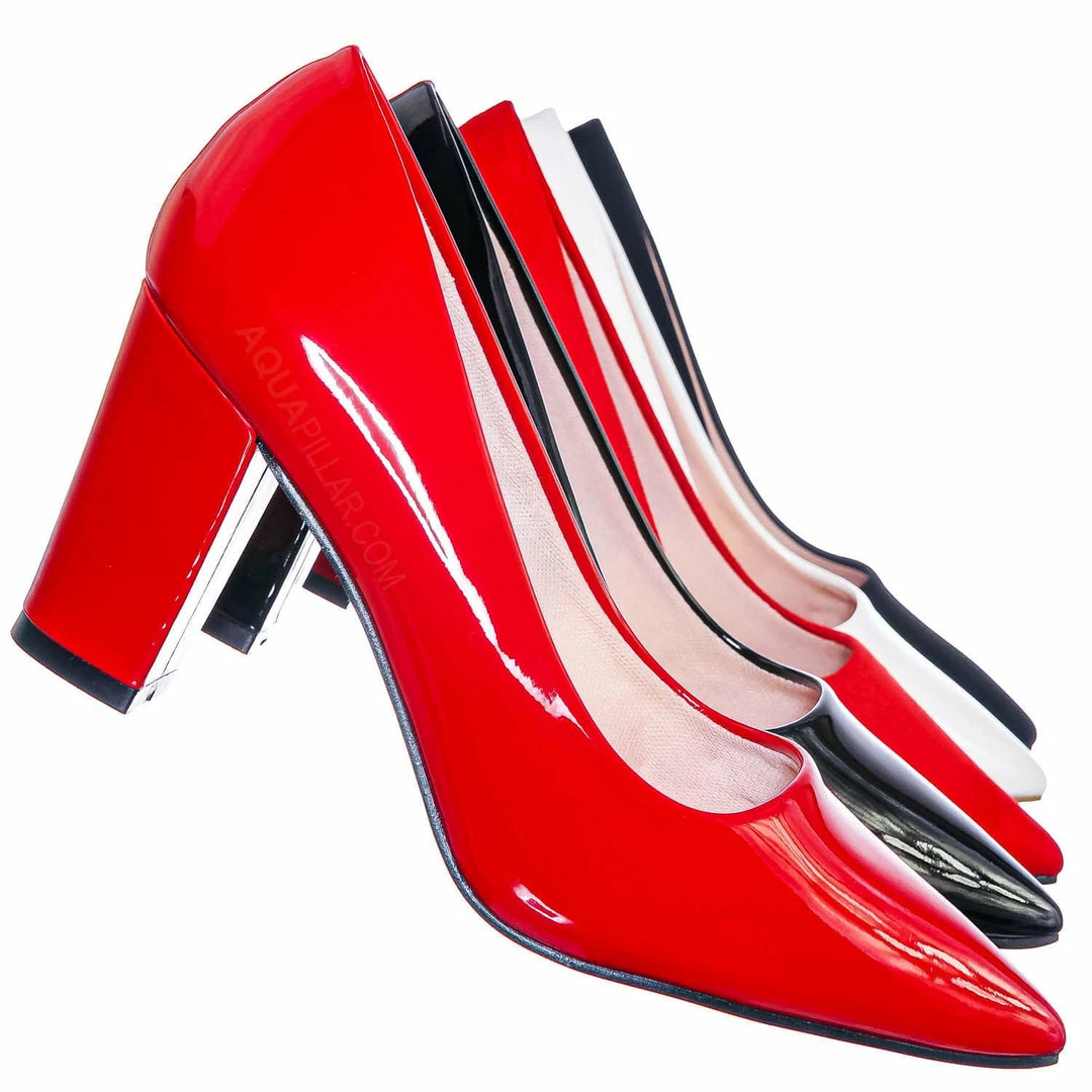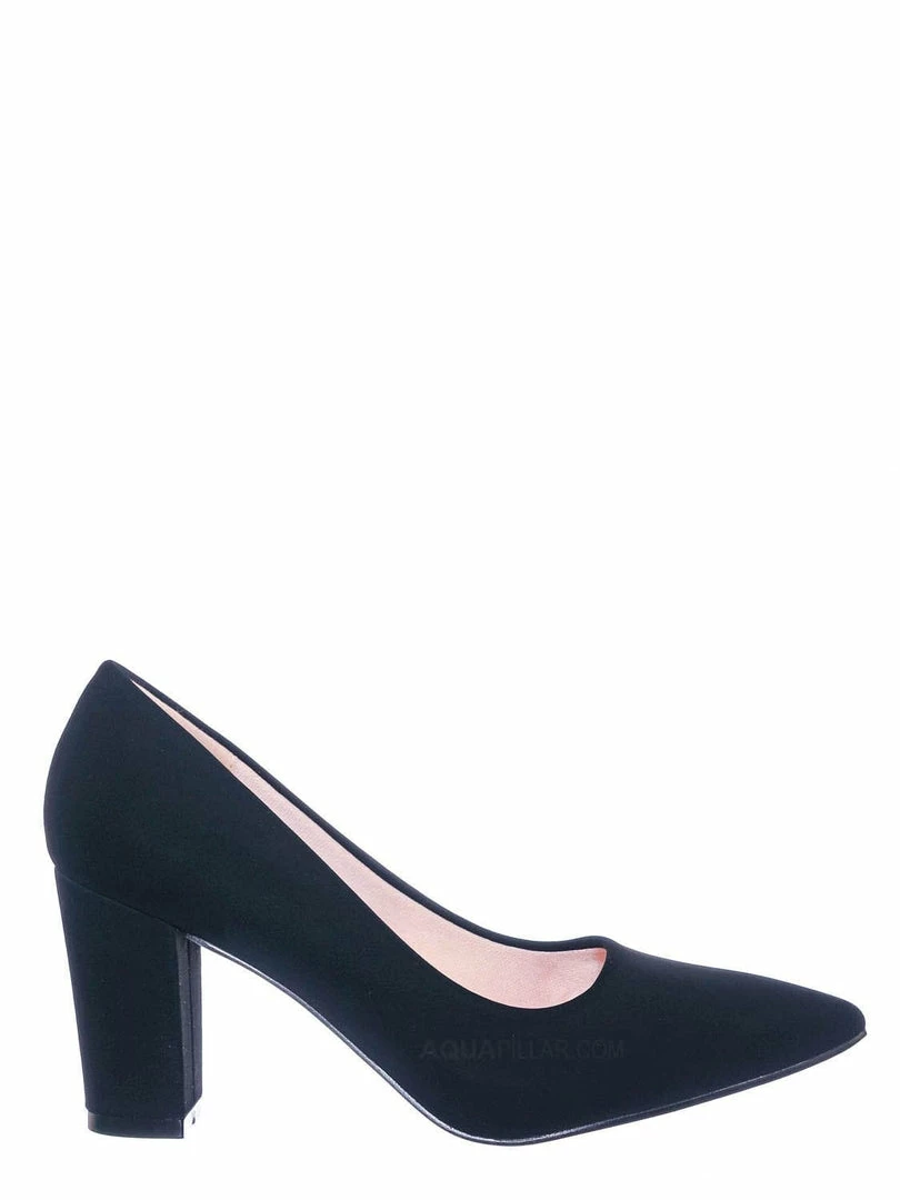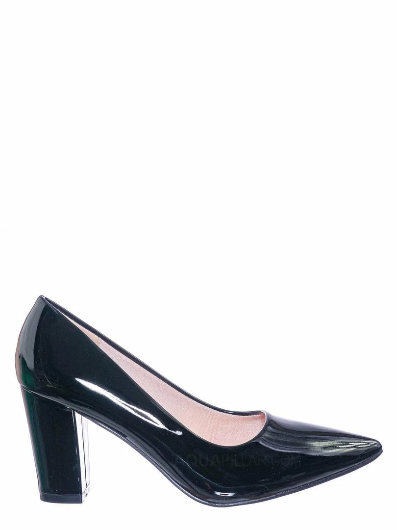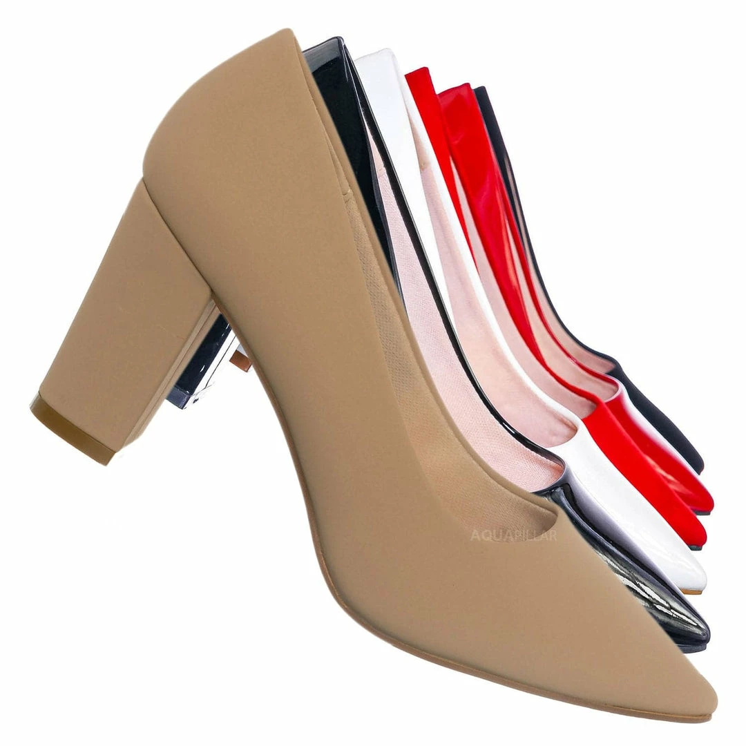 Product Detail : These extra comfy dress pumps feature a classic silhouette, pointed closed-toe, comfortable soft foam padding, chunky block high heel, and man-made outsoles.