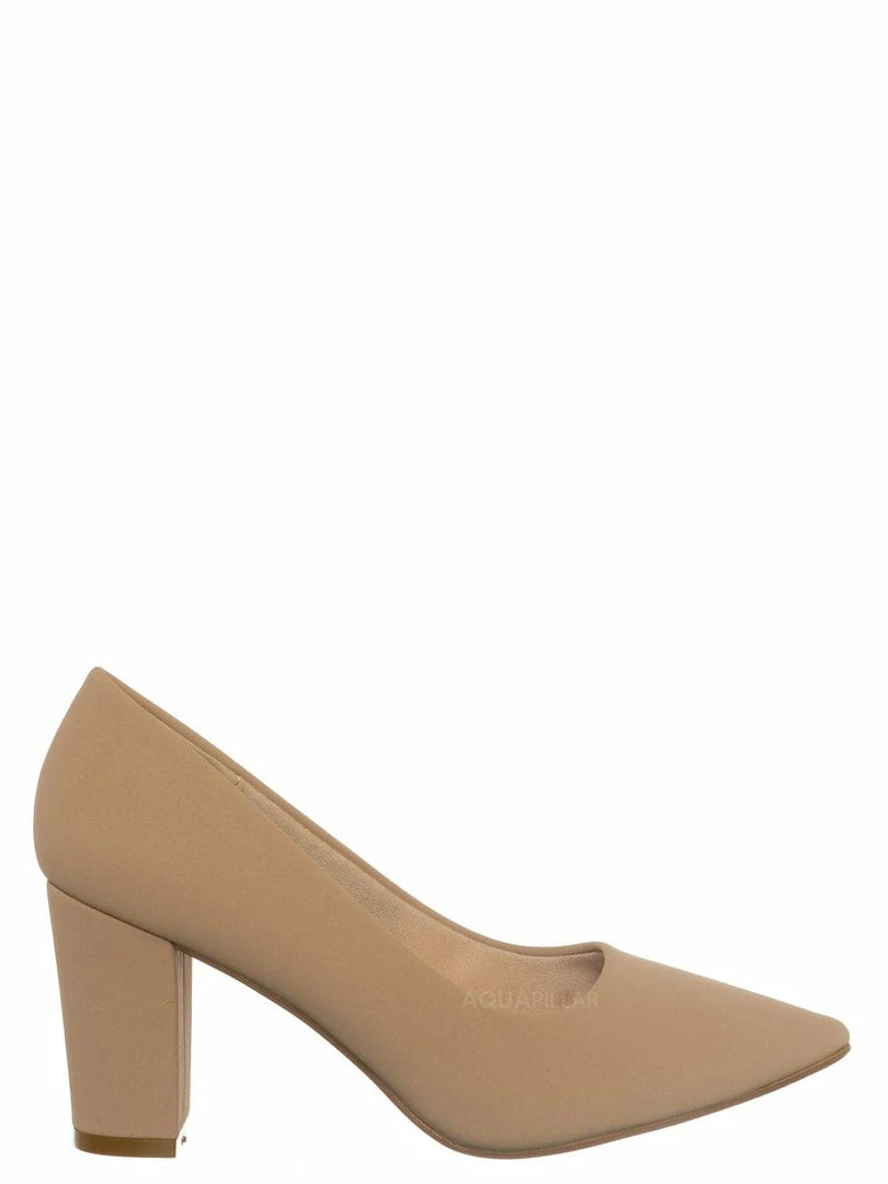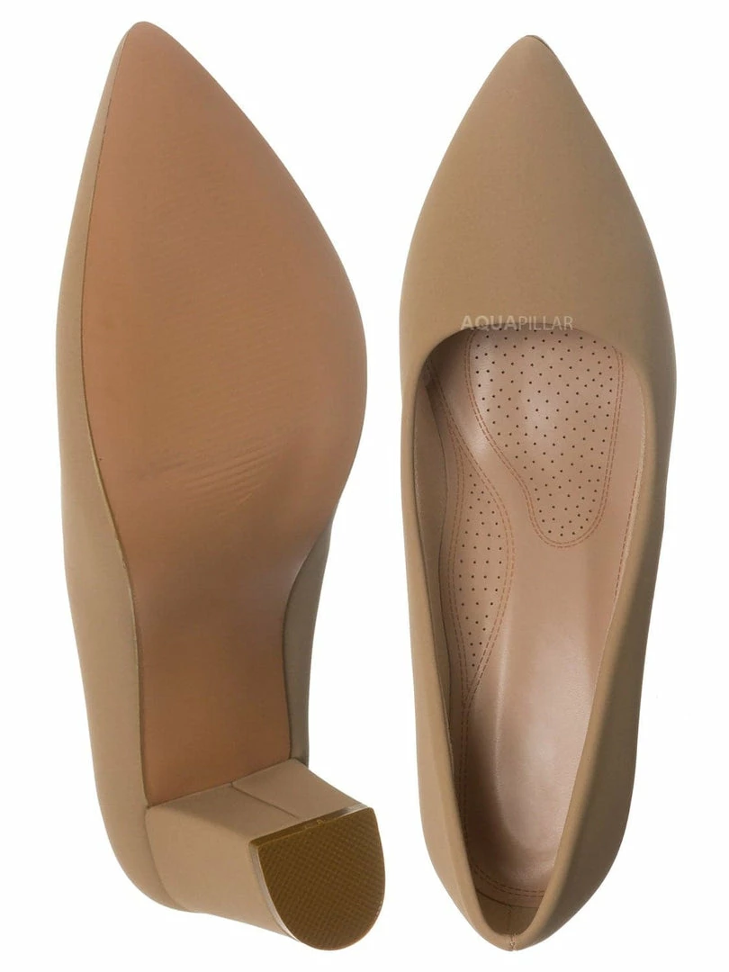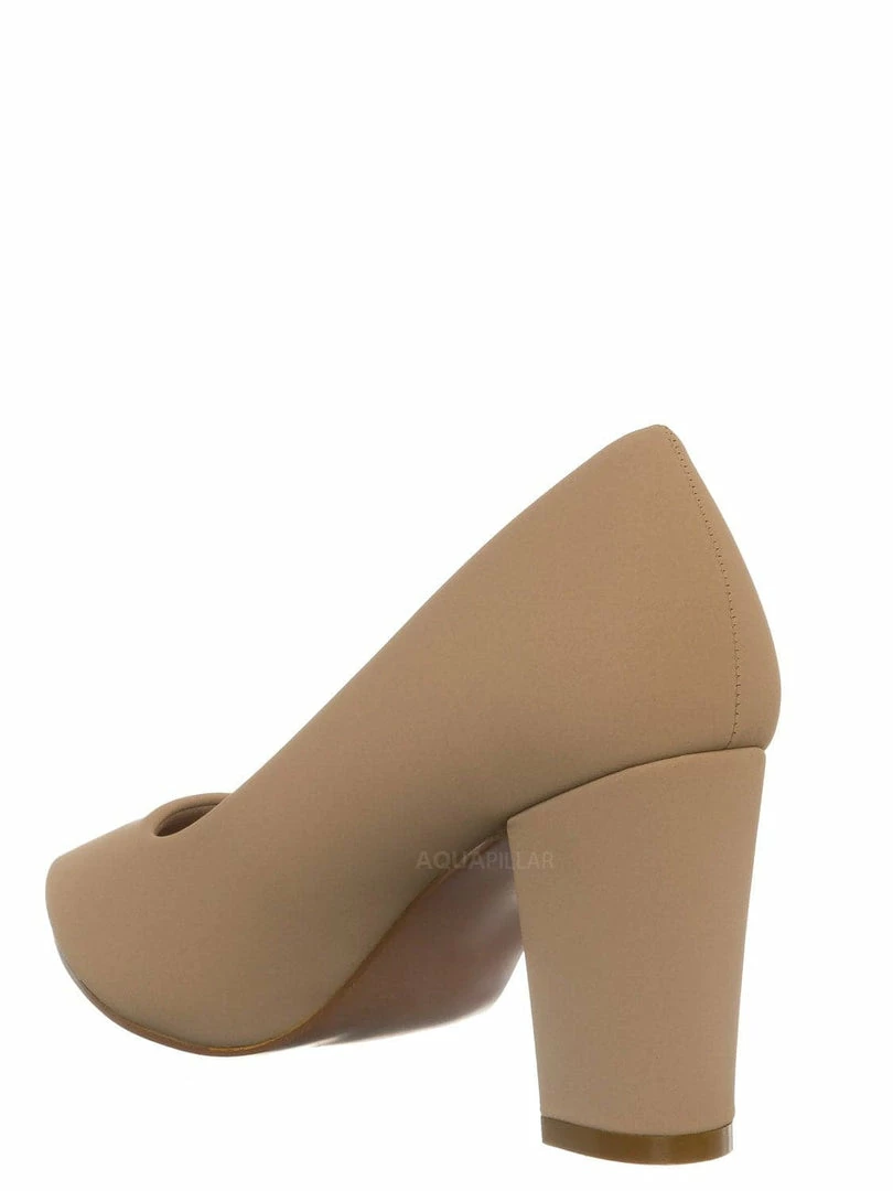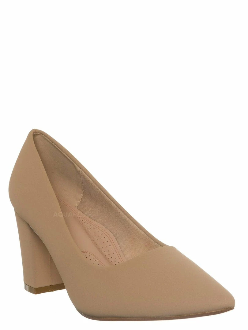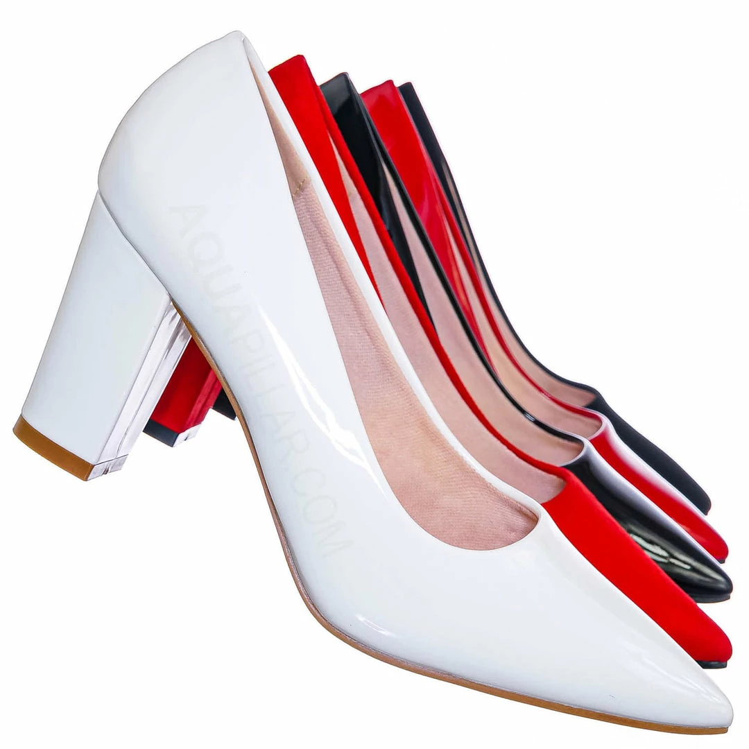 Product Detail : These extra comfy dress pumps feature a classic silhouette, pointed closed-toe, comfortable soft foam padding, chunky block high heel, and man-made outsoles.