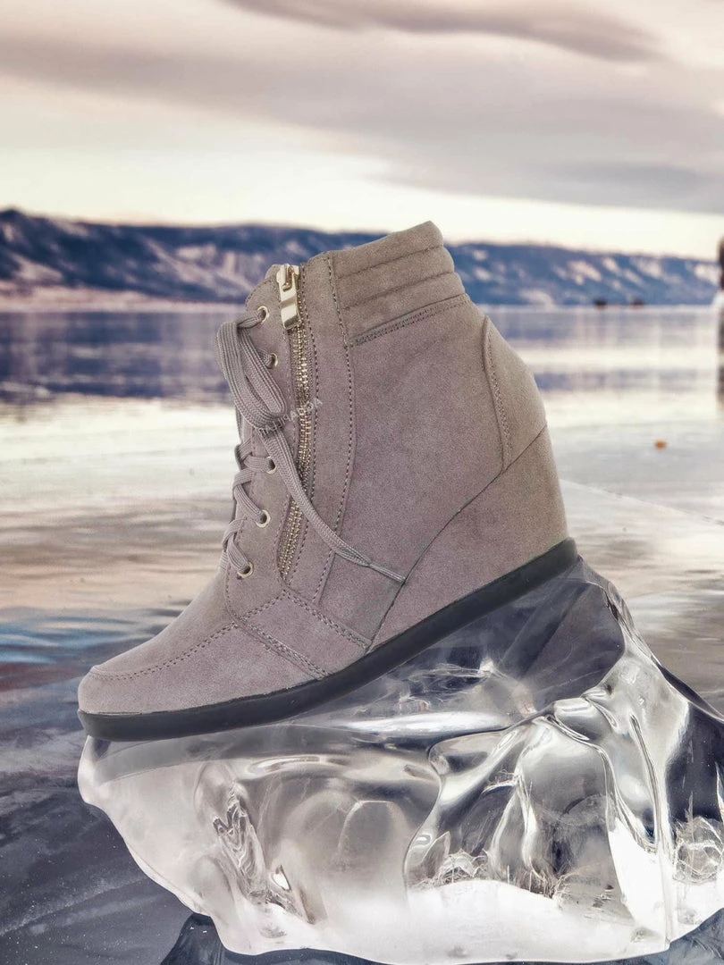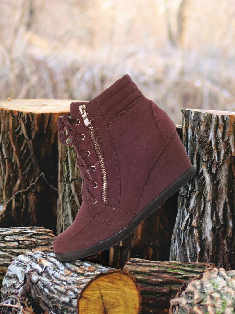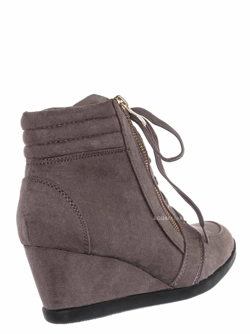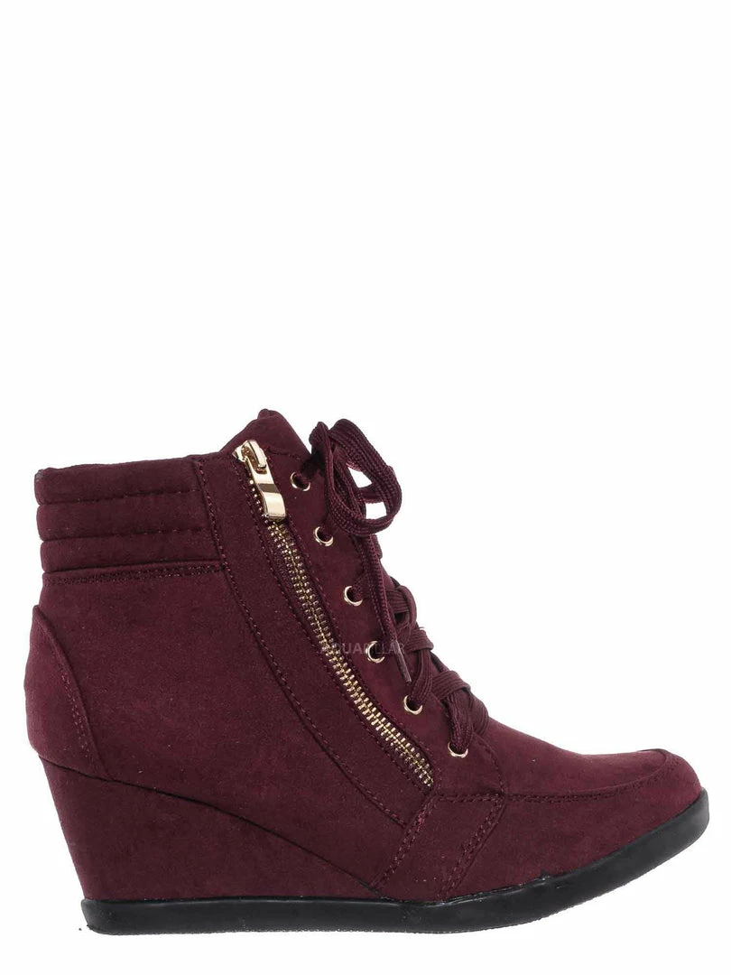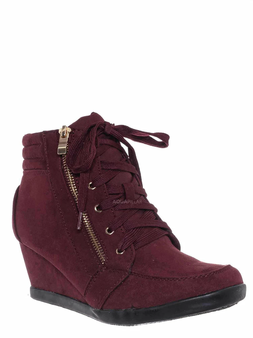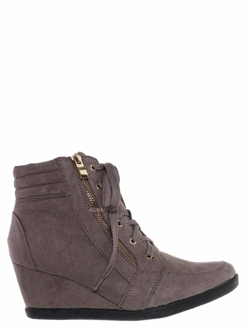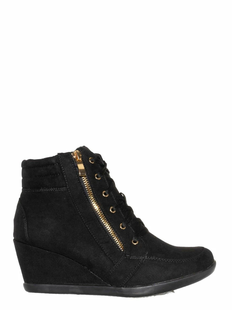 Product Detail : These sporty sneakers features a classic 90’s girl pop band silhouette, NON FUNCTIONAL antique zip ornamentation on the outer side of the shoes, invisible hidden wedge, rounded closed toe, lace up closure, padded heel collar, and lightly padded insole.